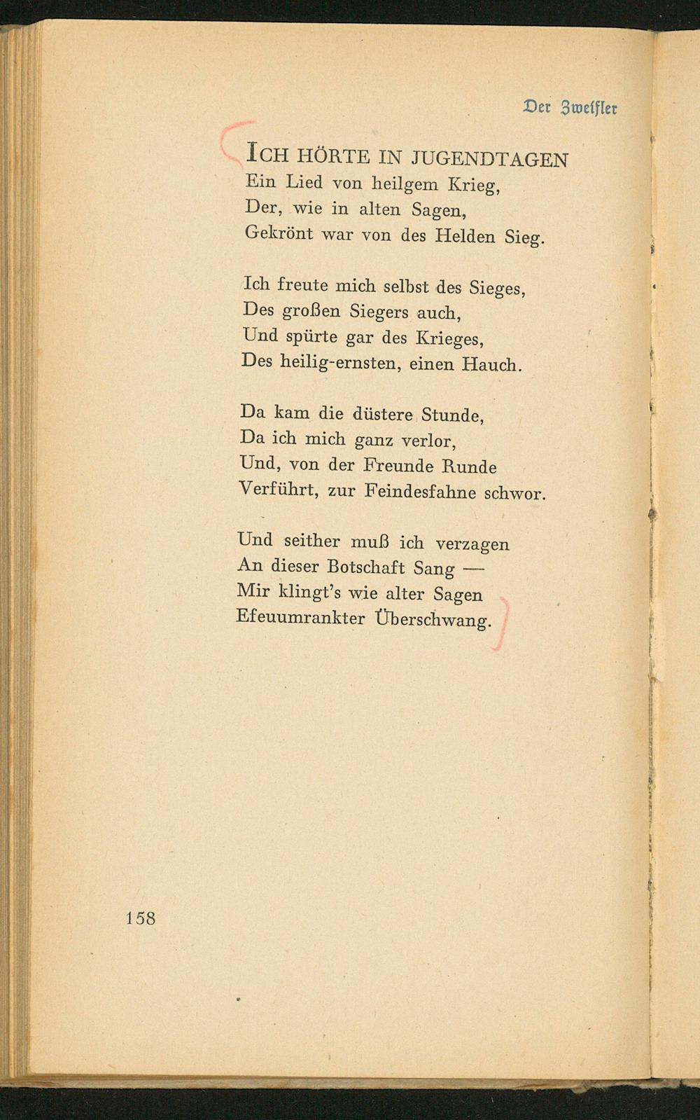 Und spürte gar des Krieges, Des heilig- ernsten, einen Hauch.