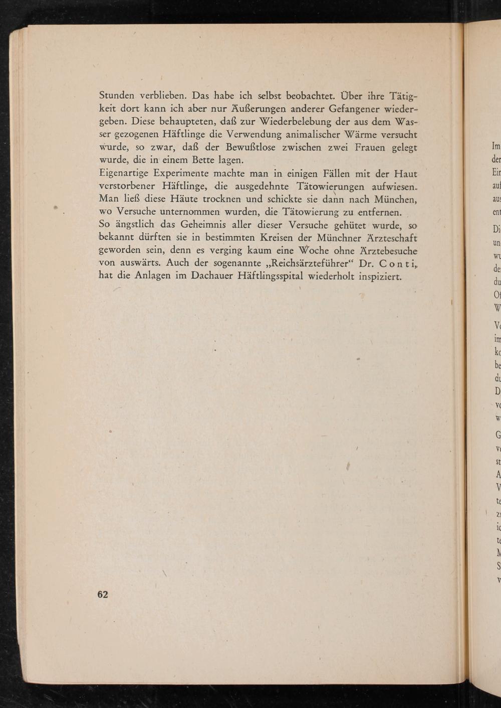 Eigenartige Experimente machte man in einigen Fällen mit der Haut verstorbener Häftlinge, die ausgedehnte Tätowierungen aufwiesen. Man ließ diese Häute trocknen und schickte sie dann nach München , wo Versuche unternommen wurden, die Tätowierung zu entfernen.