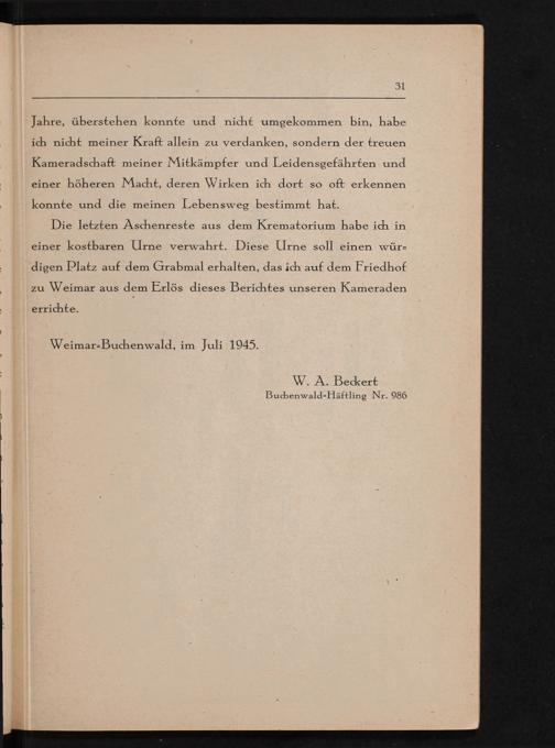W.A. Beckert Buchenwald-Häftling Nr. 986