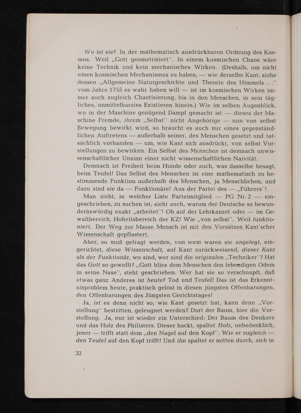 Man sieht, in welcher Liste Parteimitglied PG Nr. 2 eingeschrieben, zu suchen ist, sieht auch, warum der Deutsche so bewundernswürdig exakt ,, arbeitet"! Ob auf der Lehrkanzel oder im Gewaltbereich, Hoheitsbereich der KZ! Wie ,, von selbst". Weil funktioniert. Der Weg zur Masse Mensch ist mit den Vorsätzen Kant 'scher Wissenschaft gepflastert.