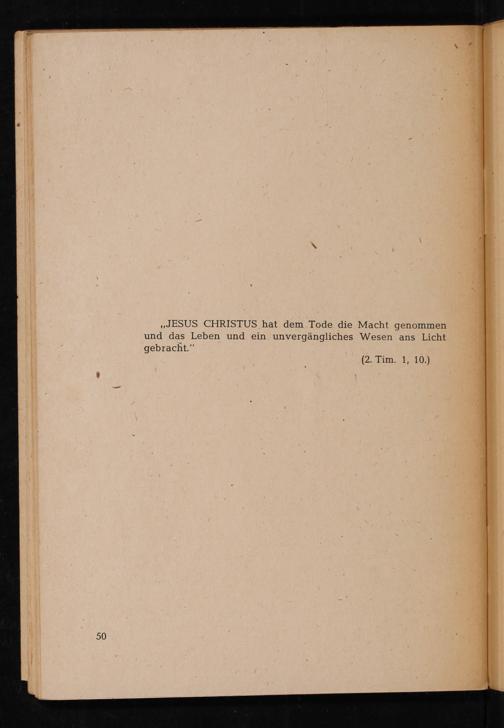 50 50 ,, JESUS CHRISTUS hat dem Tode die Macht genommen und das Leben und ein unvergängliches Wesen ans Licht gebracht." ( 2. Tim. 1, 10.)