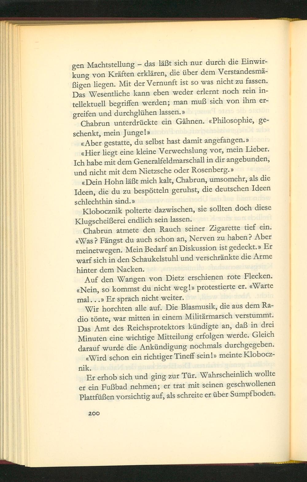 gen Machtstellung— das läßt sich nur durch die Einwir- kung von Kräften erklären, die über dem Verstandesmã- Bigen liegen. Mit der Vernunft ist so was nicht zu fassen. Das Wesentliche kann eben weder erlernt noch rein in- tellektuell begriffen werden; man muß sich von ihm er- greifen und durchglühen lassen. v
