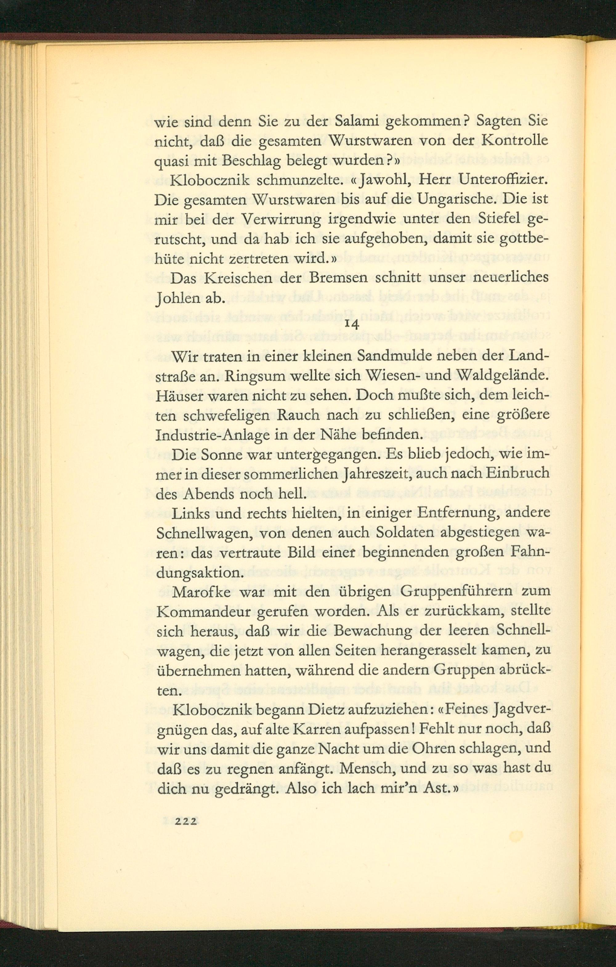 Klobocznik schmunzelte.«Jawohl, Herr Unteroffizier. Die gesamten Wurstwaren bis auf die Ungarische. Die ist mir bei der Verwirrung irgendwie unter den Stiefel ge- rutscht, und da hab ich sie aufgehoben, damit sie gottbe- hüte nicht zertreten wird.v