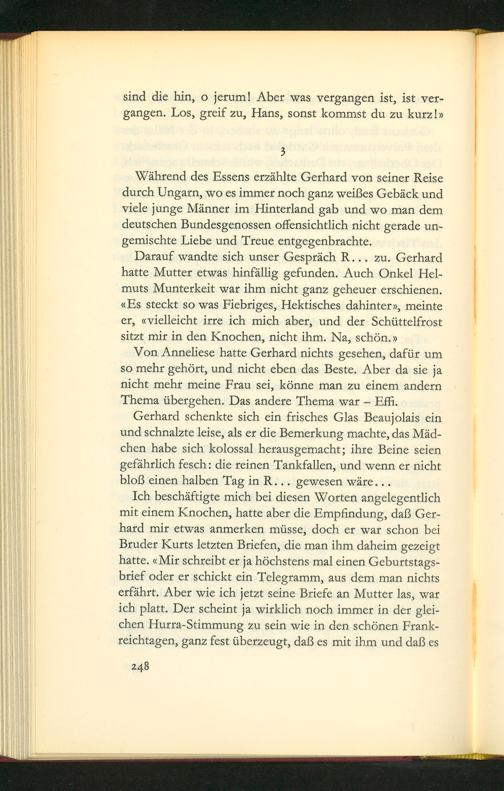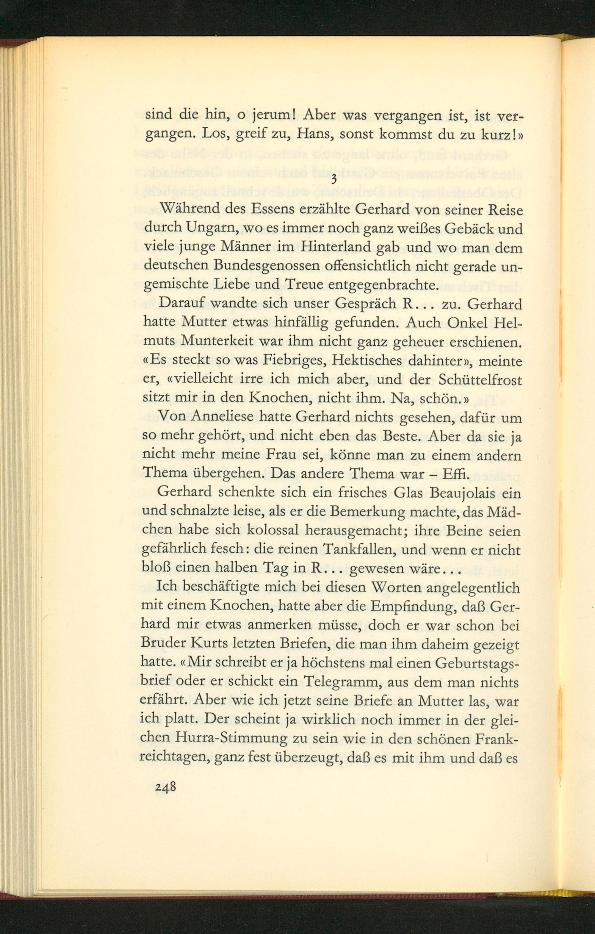 Von Anneliese hatte Gerhard nichts geschen, dafür um so mehr gehört, und nicht eben das Beste. Aber da sie ja nicht mehr meine Frau sei, könne man zu einem andern Thema übergehen. Das andere Thema war— Rffi.
