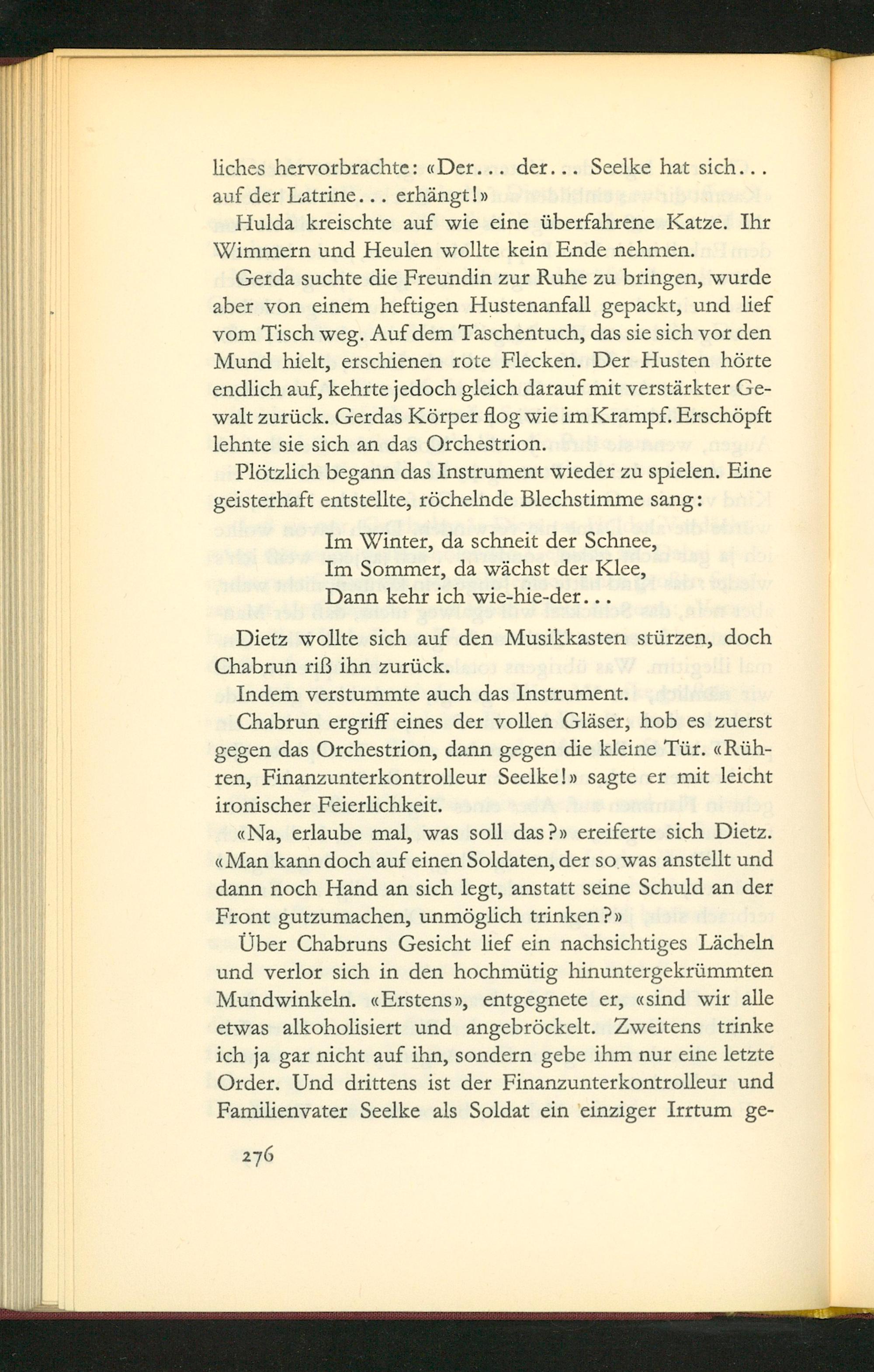 Uber Chabruns Gesicht lief ein nachsichtiges Lächeln und verlor sich in den hochmütig hinuntergekrümmten Mundwinkeln. eErstensv, entgegnete er, asind wir alle etwas alkoholisiert und angebrõckelt. Zweitens trinke ich ja gar nicht auf ihn, sondern gebe ihm nur eine letzte Order. Und drittens ist der Finanzunterkontrolleur und Familienvater Seelke als Soldat ein einziger Irrtum ge-
