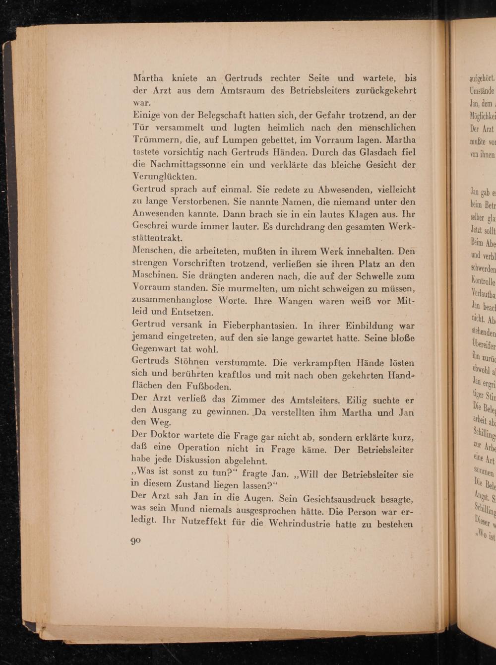 Martha kniete an Gertruds rechter Seite und wartete, bis der Arzt aus dem Amtsraum des Betriebsleiters zurückgekehrt war.