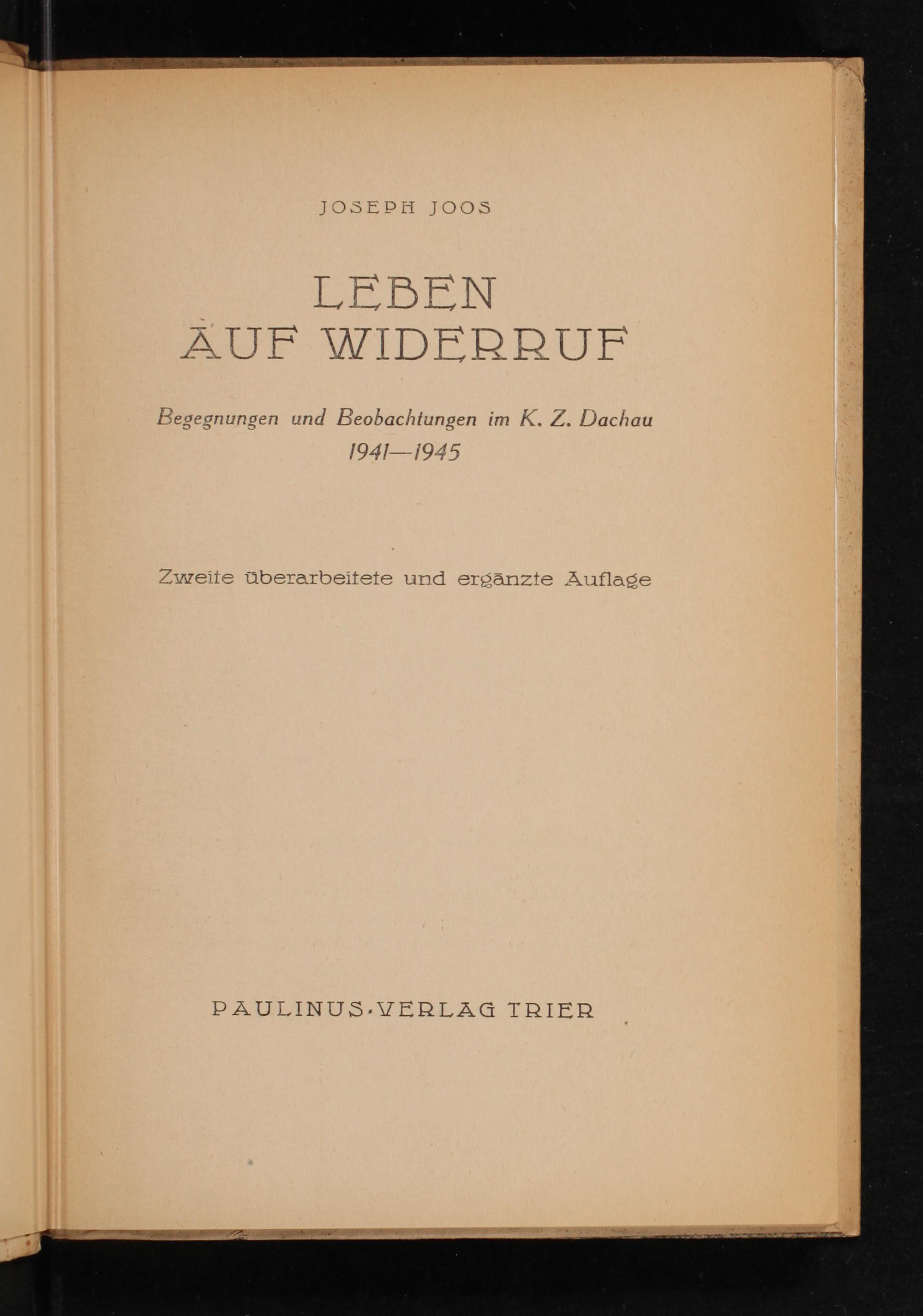 Leben auf Widerruf : Begegnungen und Beobachtungen im K. Z. Dachau 1941 - 1945 / Joseph Joos