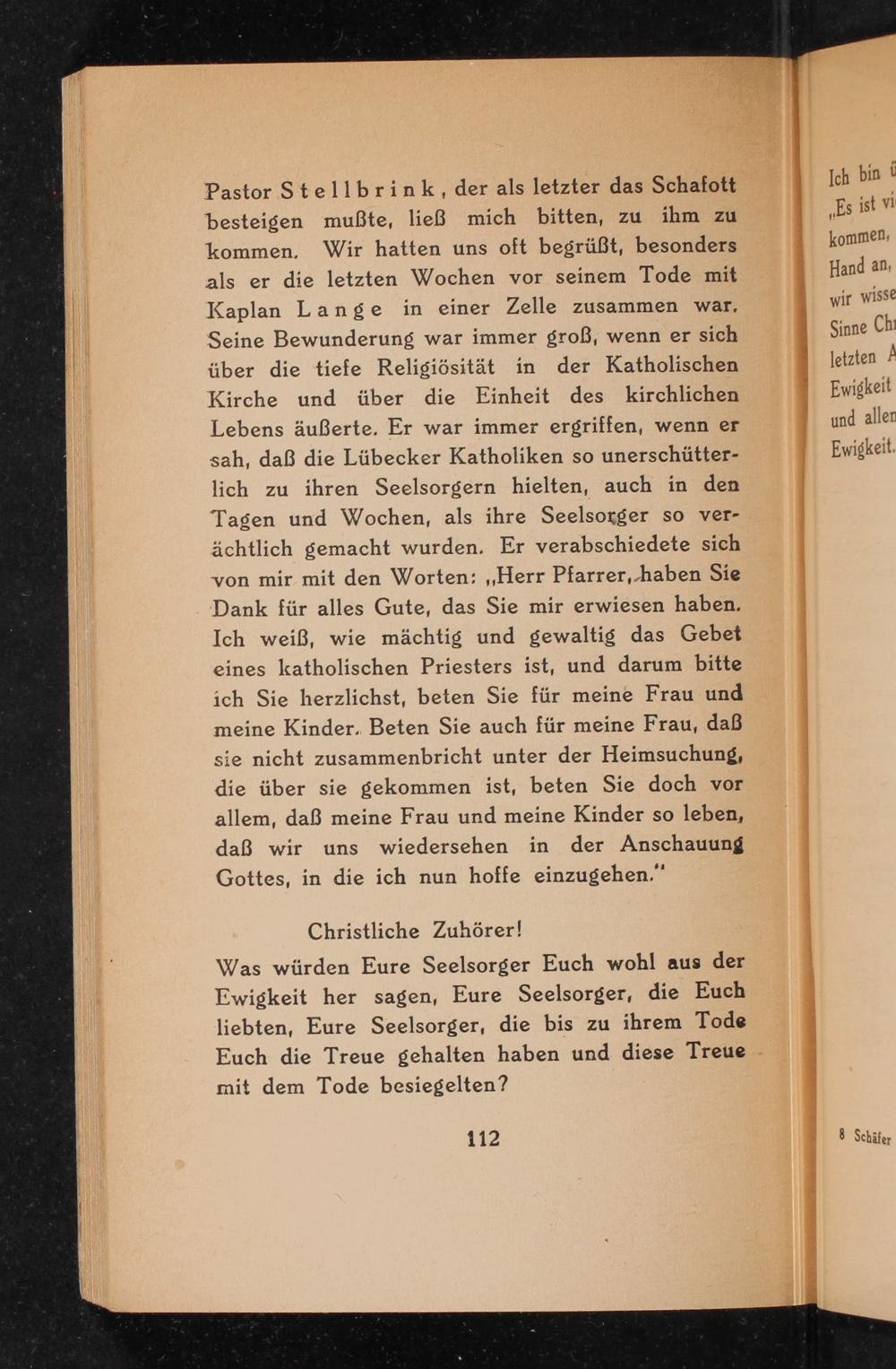 Wo seine Zeugen sterben, ist sein Reich : Briefe der enthaupteten Lübecker Geistlichen und Berichte von Augenzeugen / zsgest. von Josef Schäfer