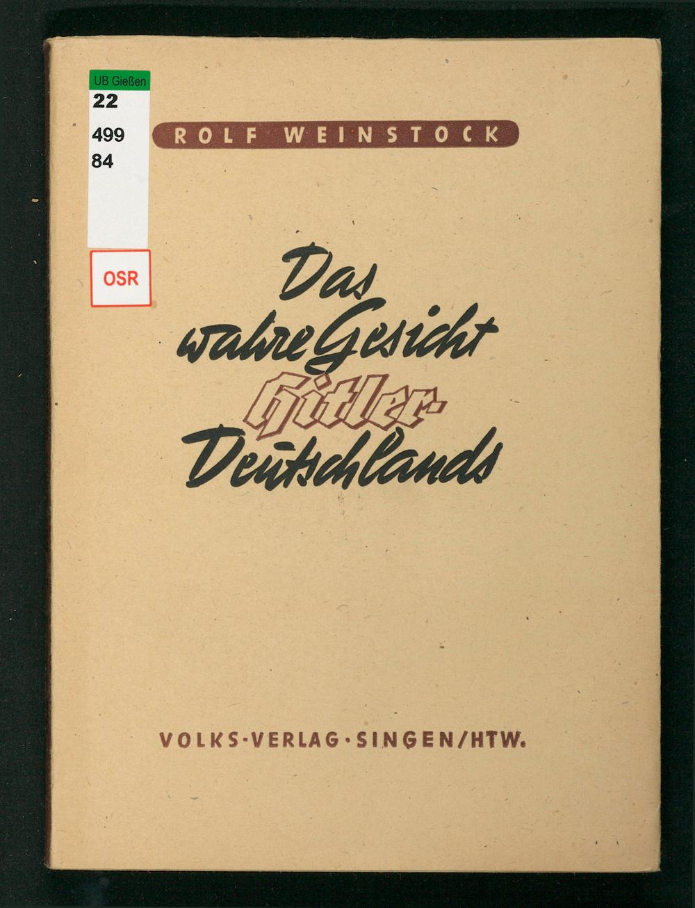 Das wahre Gesicht Hitler-Deutschlands : Häftling Nr. 59 000 erzählt von dem Schicksal der 10 000 Juden aus Baden, aus der Pfalz und aus dem Saargebiet in den Höllen von Dachau, Gurs-Drancy, Auschwitz, Jawischowitz, Buchenwald / Rolf Weinstock