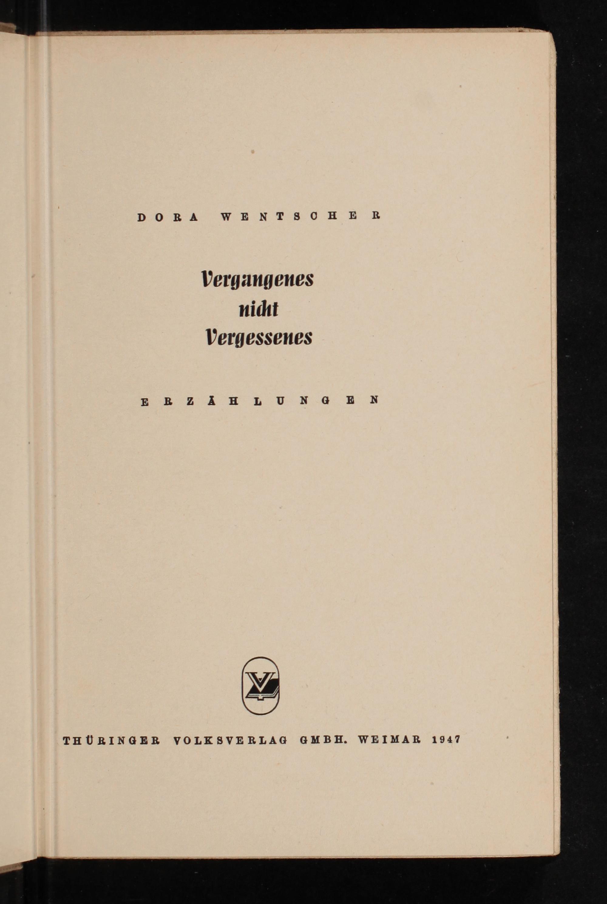 Vergangenes nicht Vergessenes : Erzählungen / Dora Wentscher