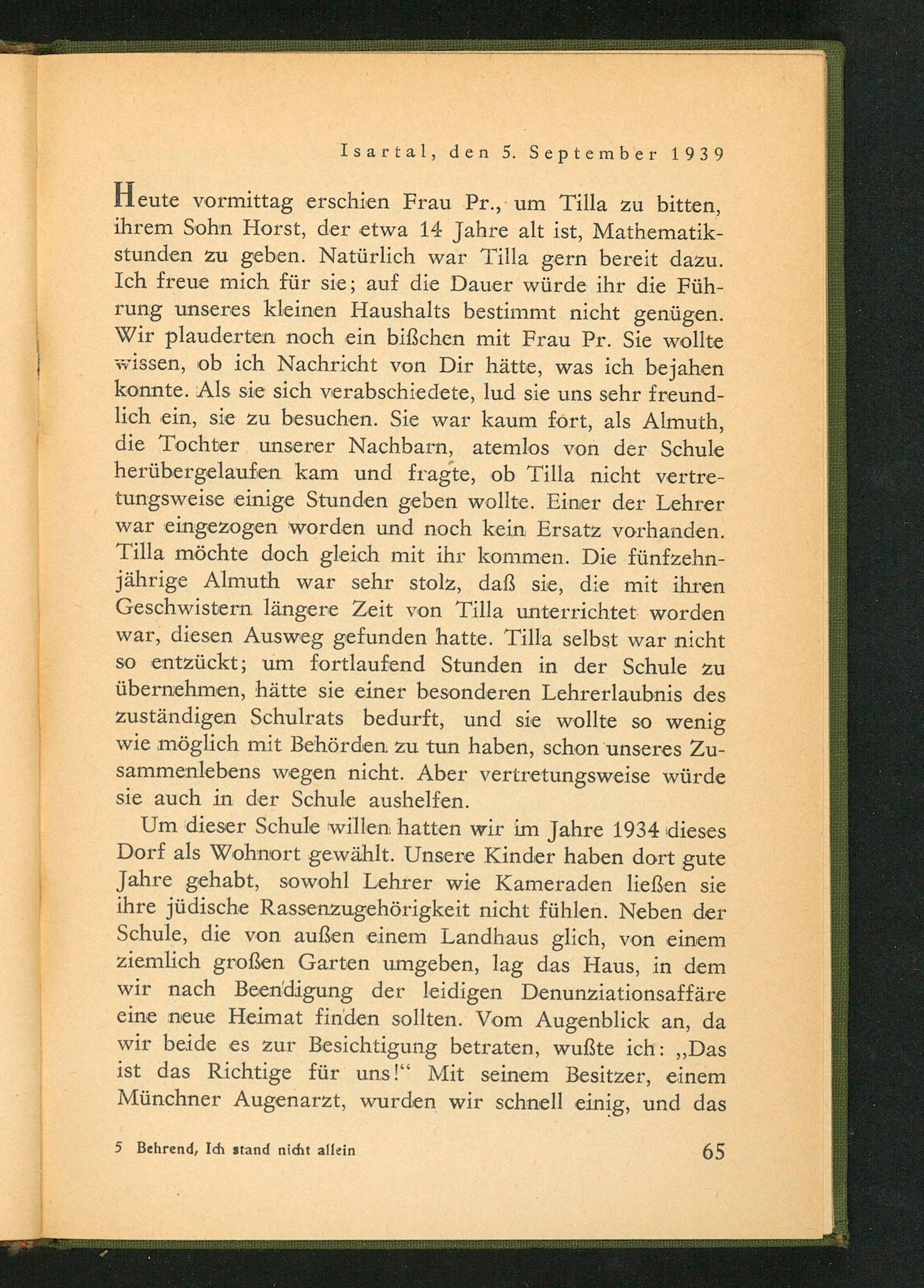 Ich stand nicht allein : Erlebnisse einer Jüdin in Deutschland 1933 - 1944 / Else R. Behrend-Rosenfeld