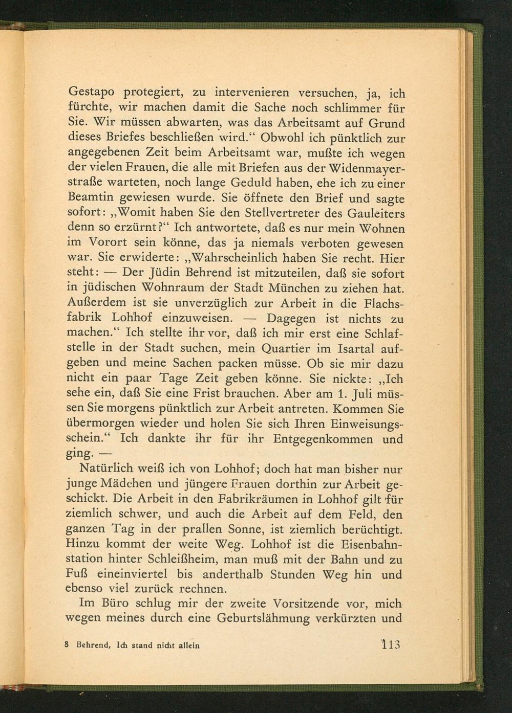 Ich stand nicht allein : Erlebnisse einer Jüdin in Deutschland 1933 - 1944 / Else R. Behrend-Rosenfeld