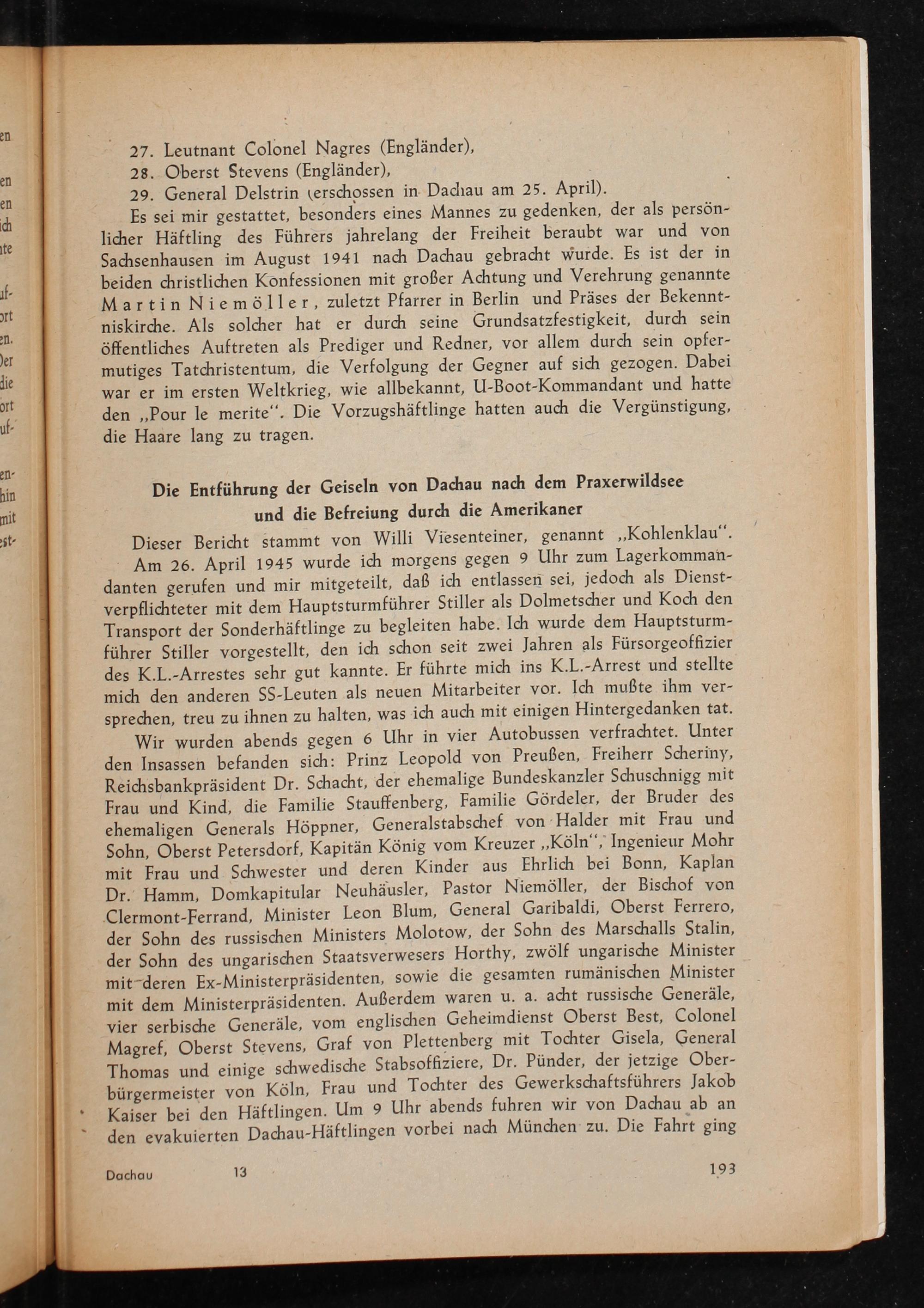 Dachau : Erinnerungen eines katholischen Geistlichen aus der Zeit seiner Gefangenschaft 1941-1945 / Hans Carls