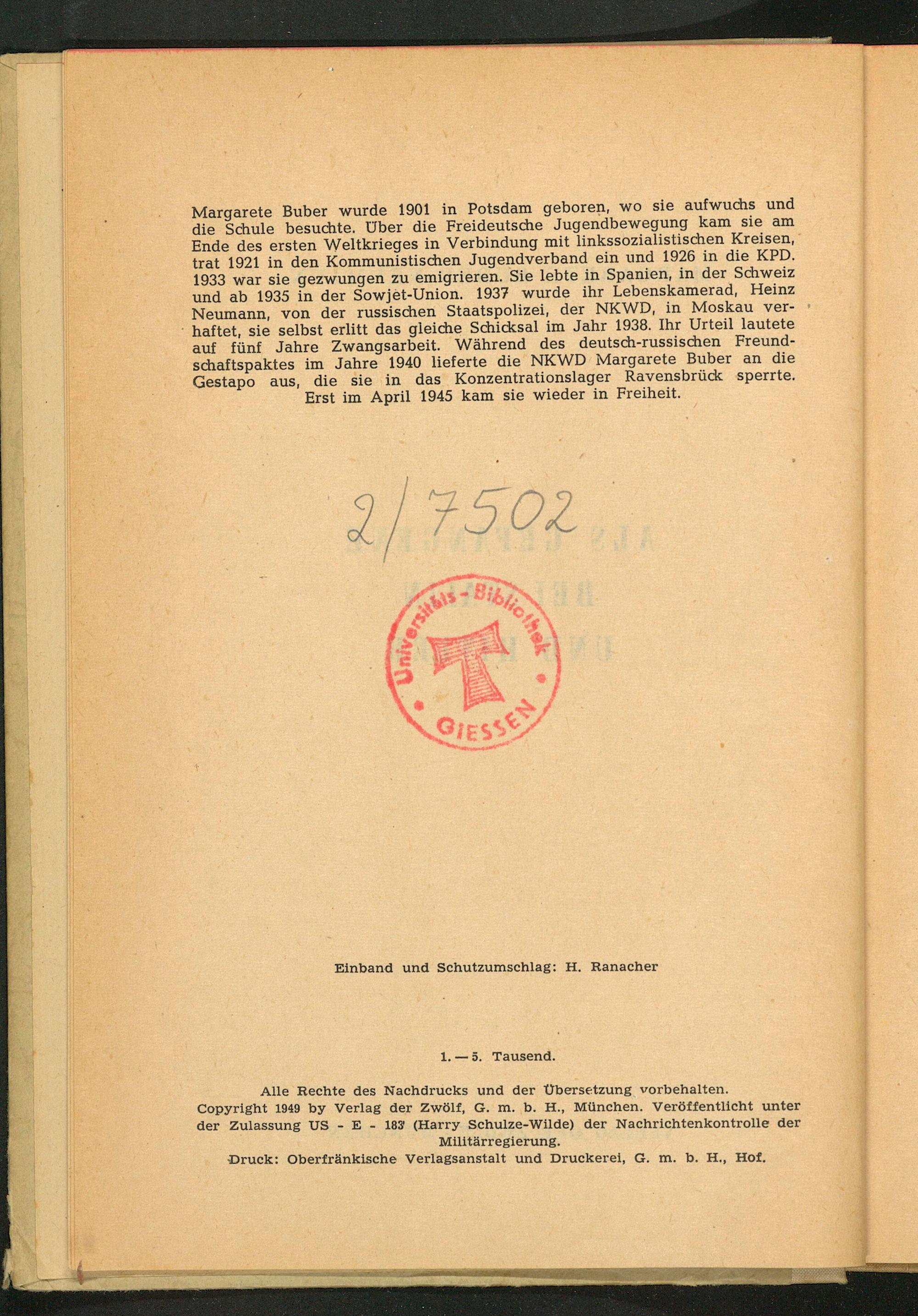 Als Gefangene bei Stalin und Hitler / Margarete Buber-Neumann