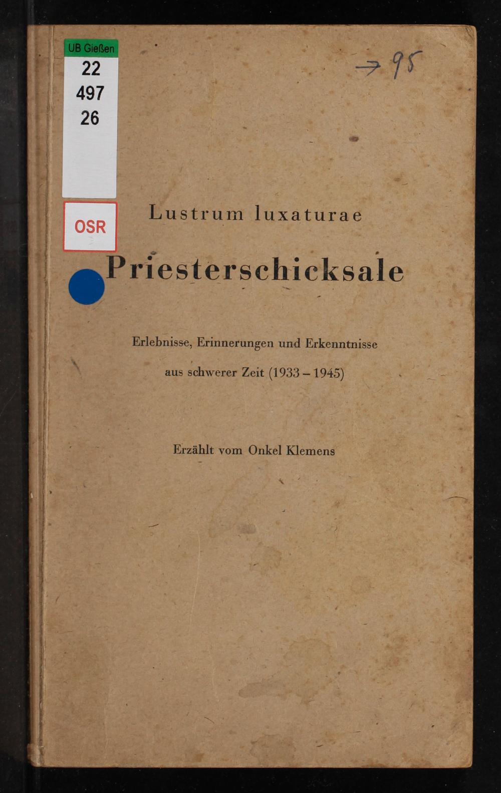 Priesterschicksale : Lustrum luxaturae : Erlebnisse, Erinnerungen und Erkenntnisse aus schwerer Zeit (1933 - 1945) / erzählt vom Onkel Klemens