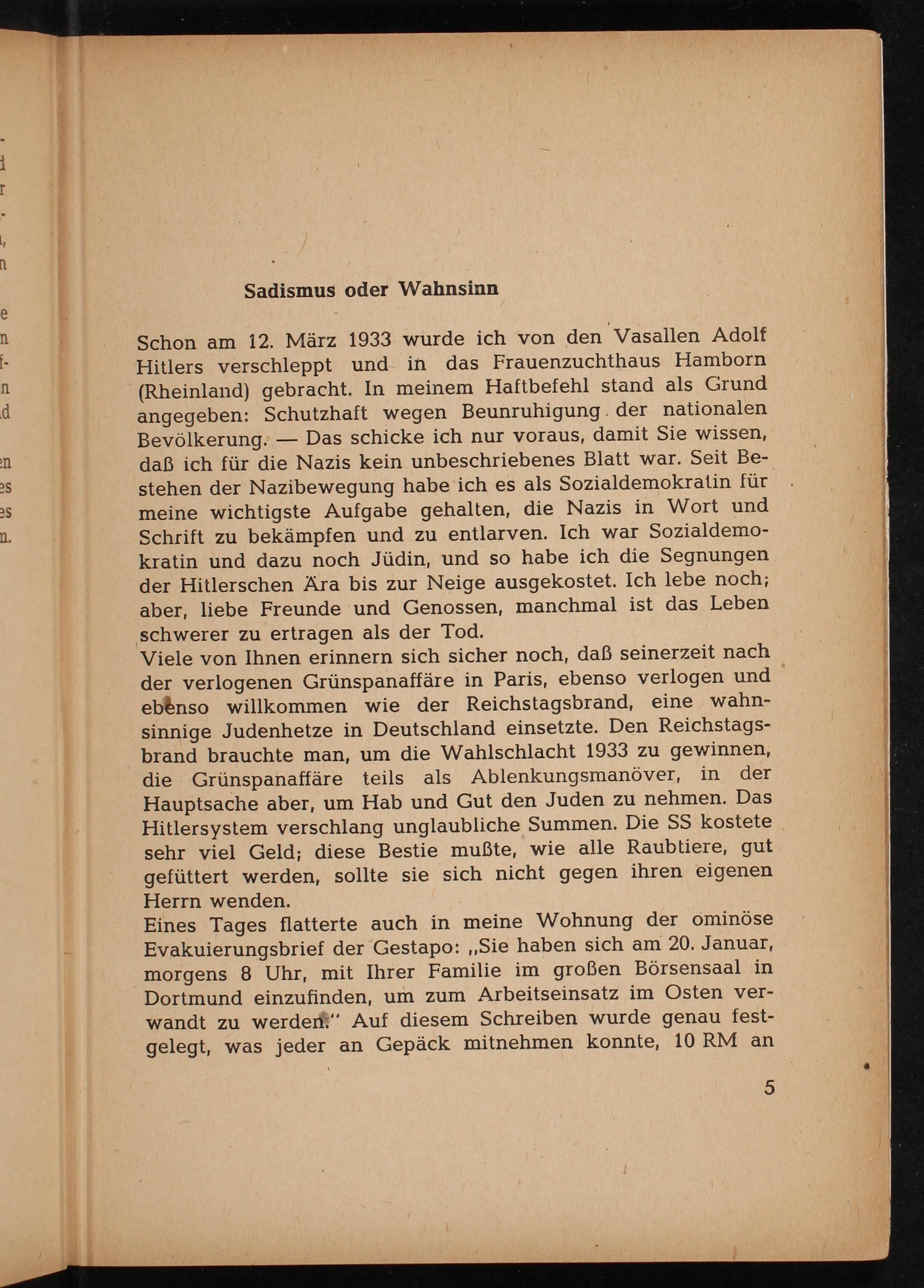 Sadismus oder Wahnsinn : Erlebnisse in den deutschen Konzentrationslagern im Osten / Jeanette Wolff