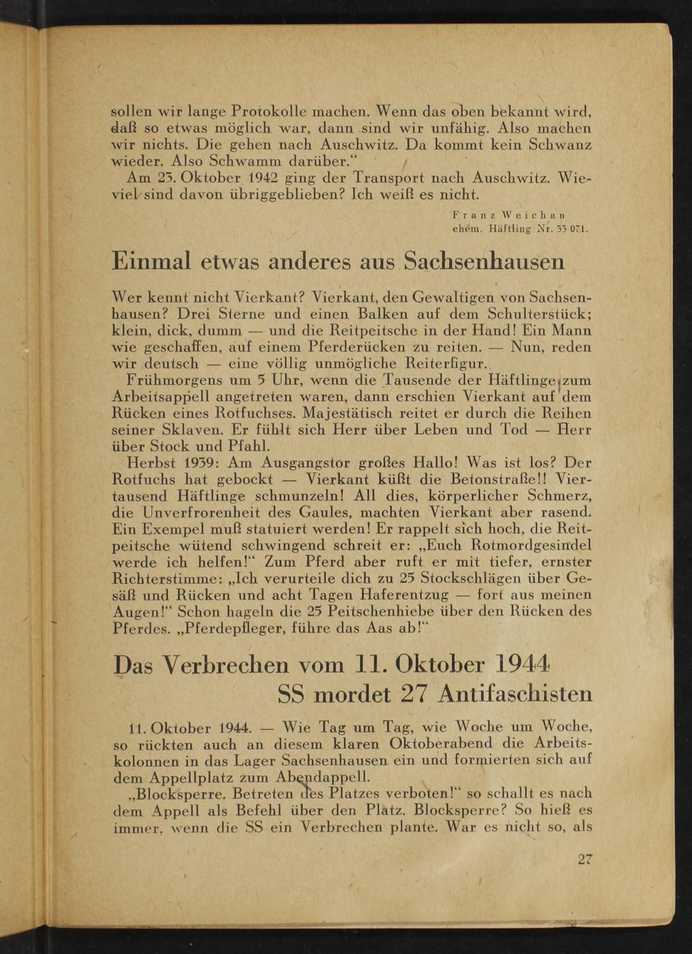 KZ Sachsenhausen / im Auftrag des Hauptausschusses "Opfer des Faschismus" herausgegeben von Lucie Großer