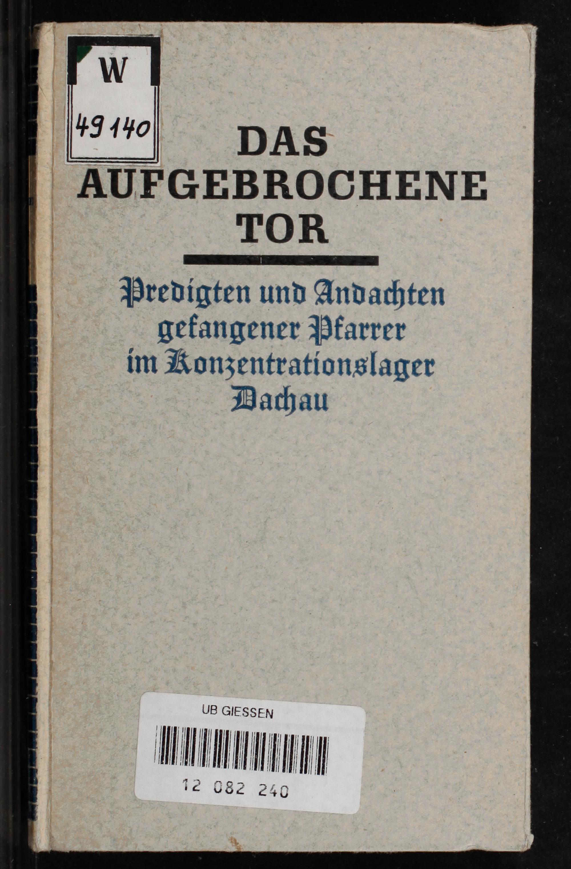 Das aufgebrochene Tor : Predigten und Andachten gefangener Pfarrer im Konzentrationslager Dachau / Vorwort und Herausgeber: Martin Niemöller