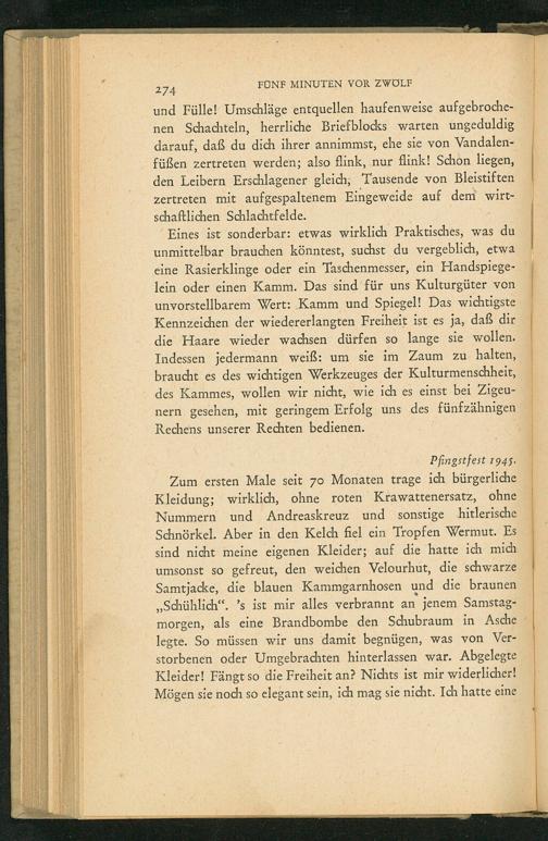 2 (1946) Fünf Minuten vor Zwölf : des ersten Jahrtausends letzte Tage unter Herrenmenschen und Herdenmenschen ; Dachauer Tagebücher des Häftlings Nr. 16921 / K. A. Gross