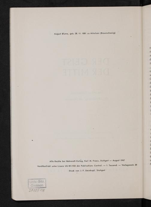 Der Geist der Mitte : das andere Deutschland : die "Umschulung" der Deutschen / August Blume