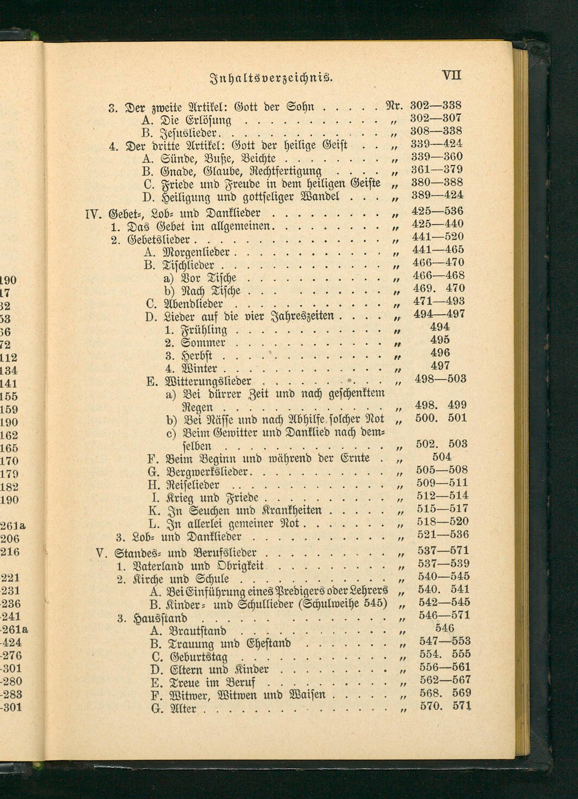 3. Lob⸗ und Danklieder V. Standes⸗ und Berufslieder „ Vaterland und Obrigkeit