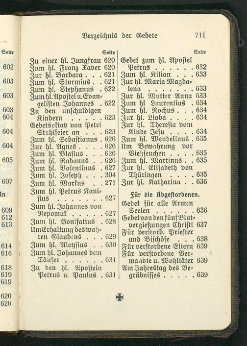 der Gebete 7¹1 Seite Gebet zum hl. Apostel Peirus 632 Zum hl. Kilian...633 Zur hl. Maria Magda⸗ lena 633
