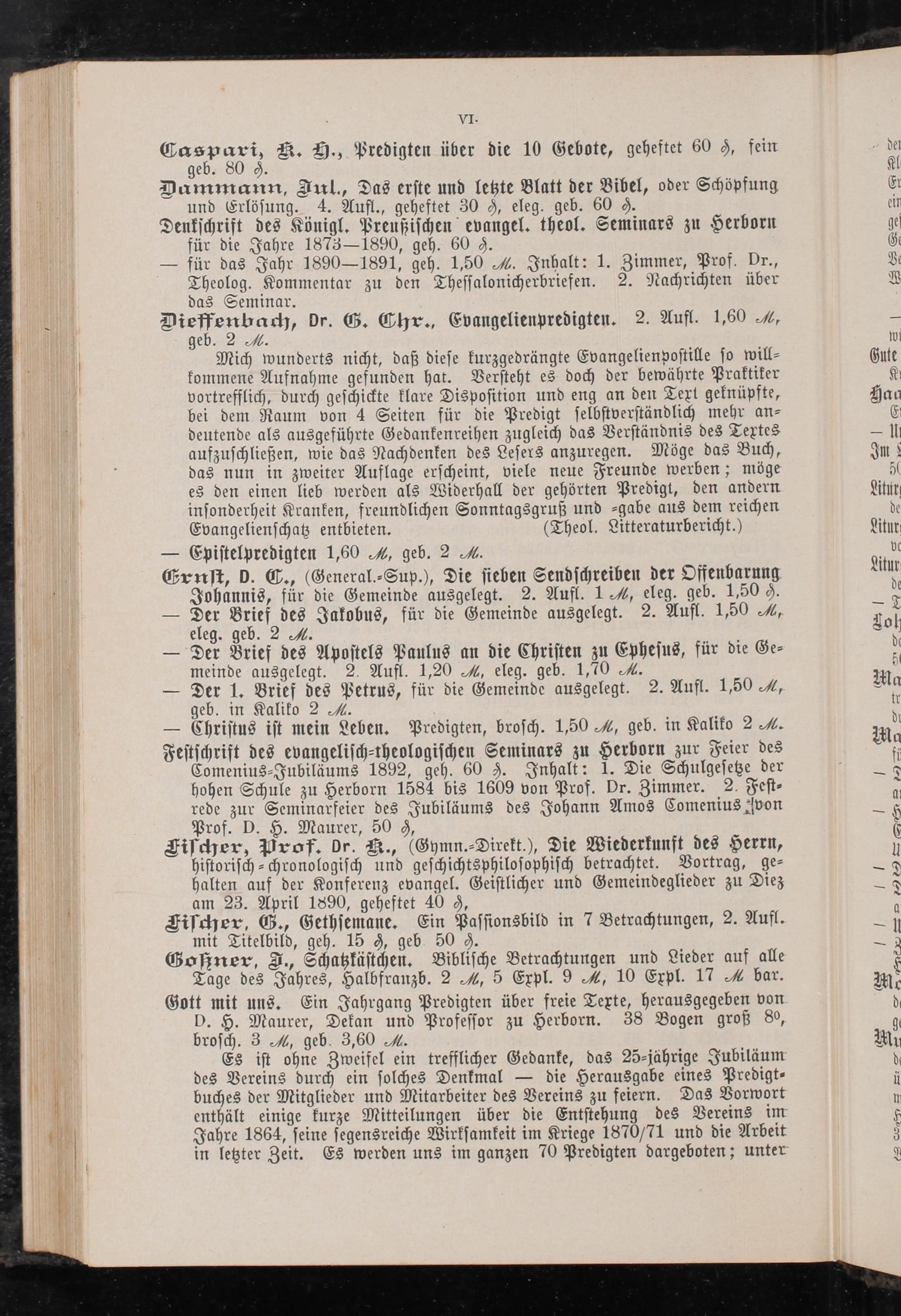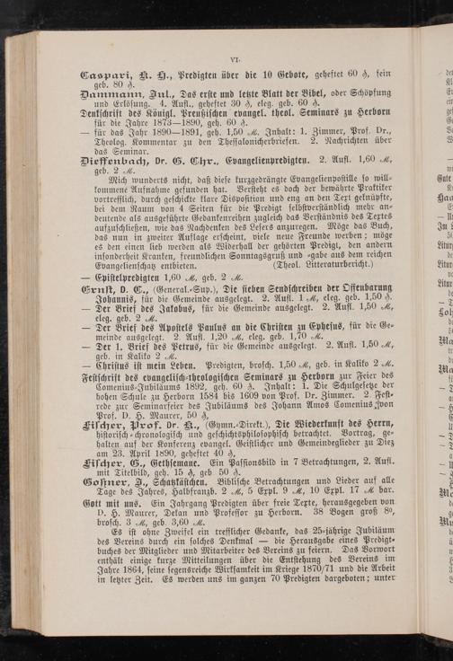 Denkschrift des Königl. Preußischen evangel. theol. Seminars zu Herborn für die Jahre 1873-1890, geh. 60 f.