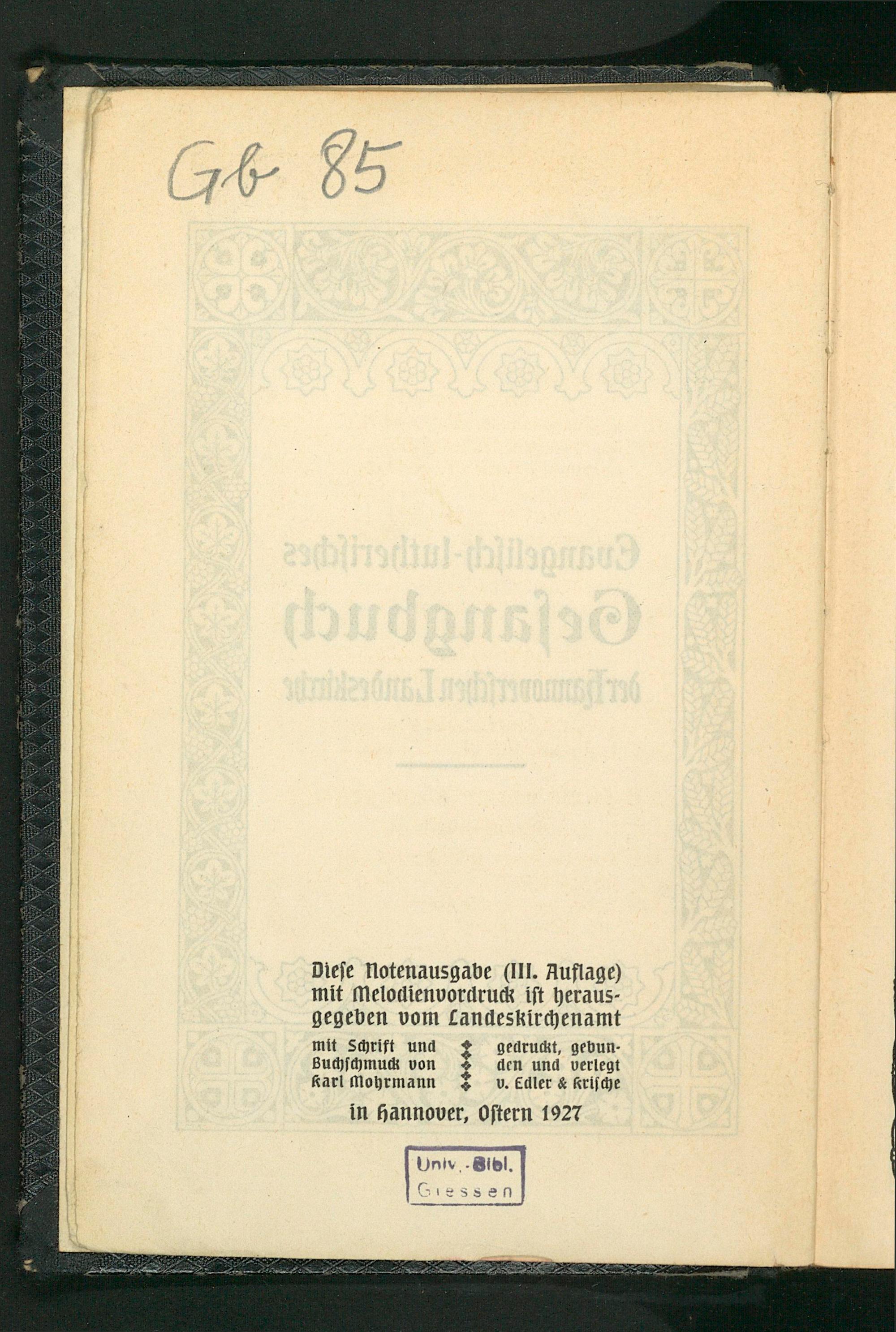 Diese Notenausgabe(III. Auflage) mit melodienvordruck ist heraus⸗ gegeben vom Landeskirchenamt mit Schrift und 4 gellruckt, gebun⸗