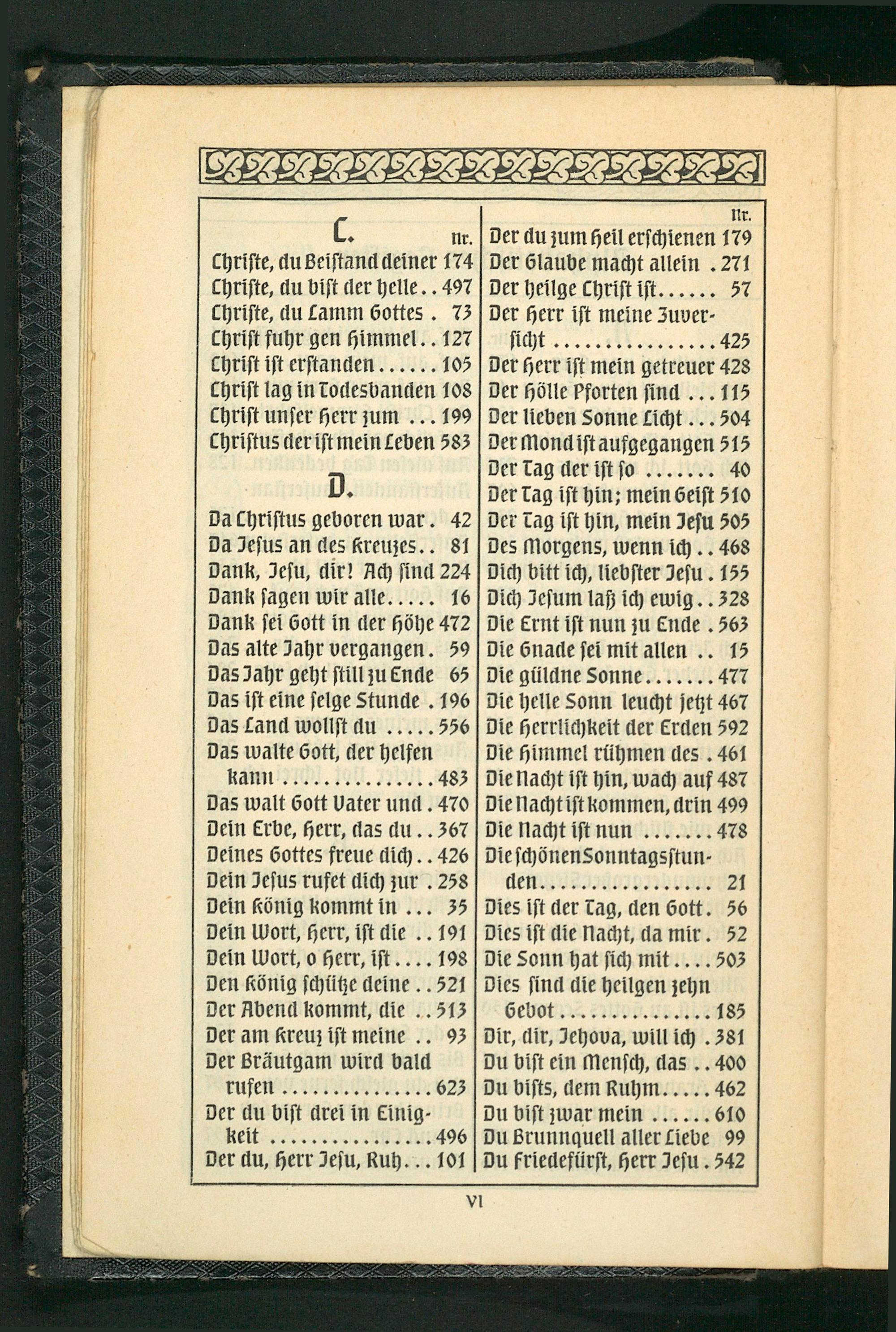 Dies ist der Tag, den ott. 56 Dies ist die HNacht, da mir. 52 Die Sonn hat sich mit... 503 Dies sind die heilgen zehn bebot.... 18⁵ Dir, dir, Jehova, will ich 381 Du bist ein Mensch, das.. 400 Du bists, dem Ruhm.. 46² Du bist jwar mein.. 61⁰ Du brunnquell aller Lieve 99 Du friedefürst, herr Jesu. 542