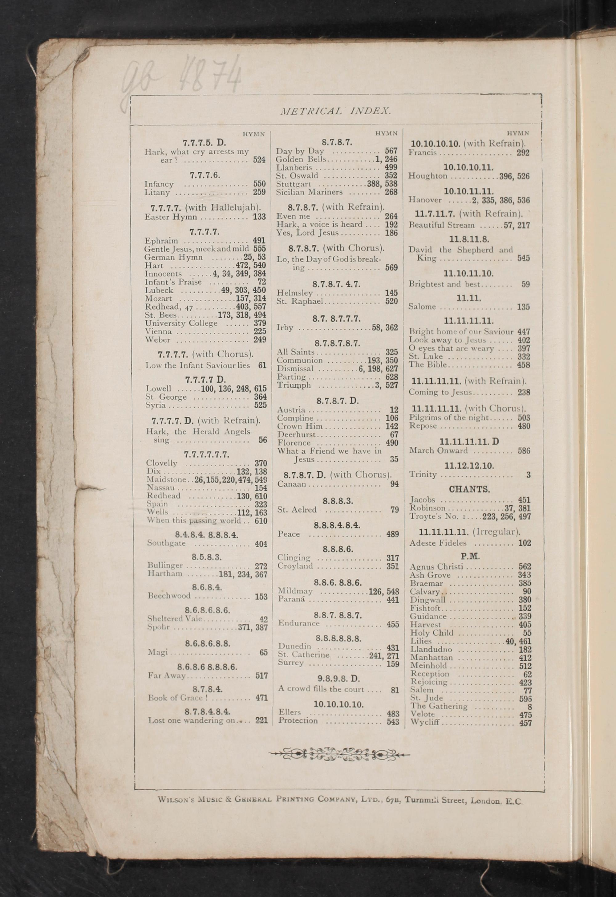 Pilgrims of the night..... 503 Repose 480 I1.11.11.11. 5 March Onward 2 586 11.12.12.10. Wrirnit, 3 CHANTS.