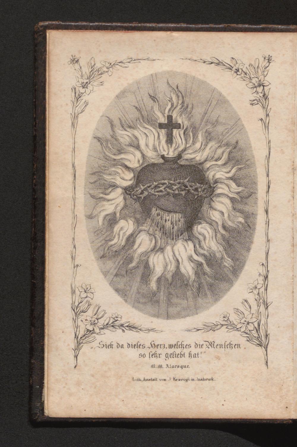 Siek da dieles Herz, welches die Menschen. so ſehr geliebt hat!" A.M. Alacoque. Lith. Anstalt von J Kravoglin Insbruck.