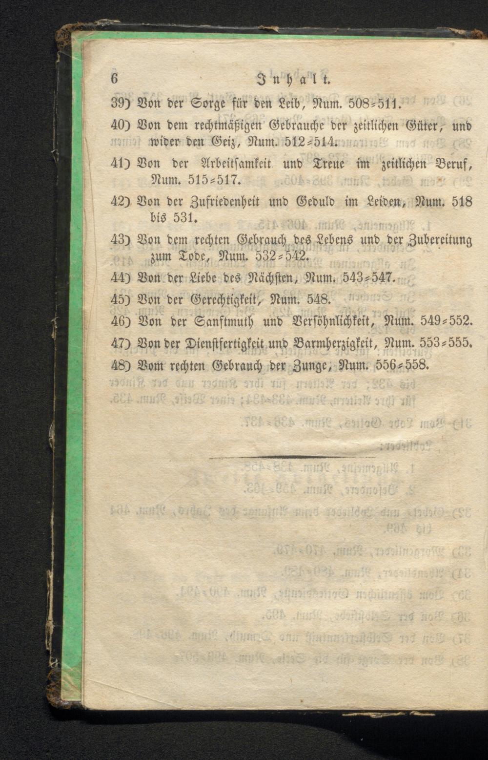 poime 46) Von der Sanftmuth und Versöhnlichkeit, Num. 549-552. 47) Von der Dienstfertigkeit und Barmherzigkeit, Num. 553-555. 48) Vom rechten Gebrauch der Zunge, Num. 556-558. 1901 190 CNN di sidi u serial vad 980 aid CCA 928 mai 181-88 il protials such an