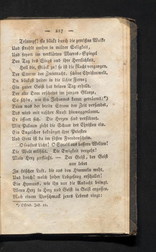 Heil dir, Glück zu! so ist die Nacht vergangen, Der Sturm der Zwietracht, schöne Christenwelt. Du blickest heiter in die lichte Ferne;