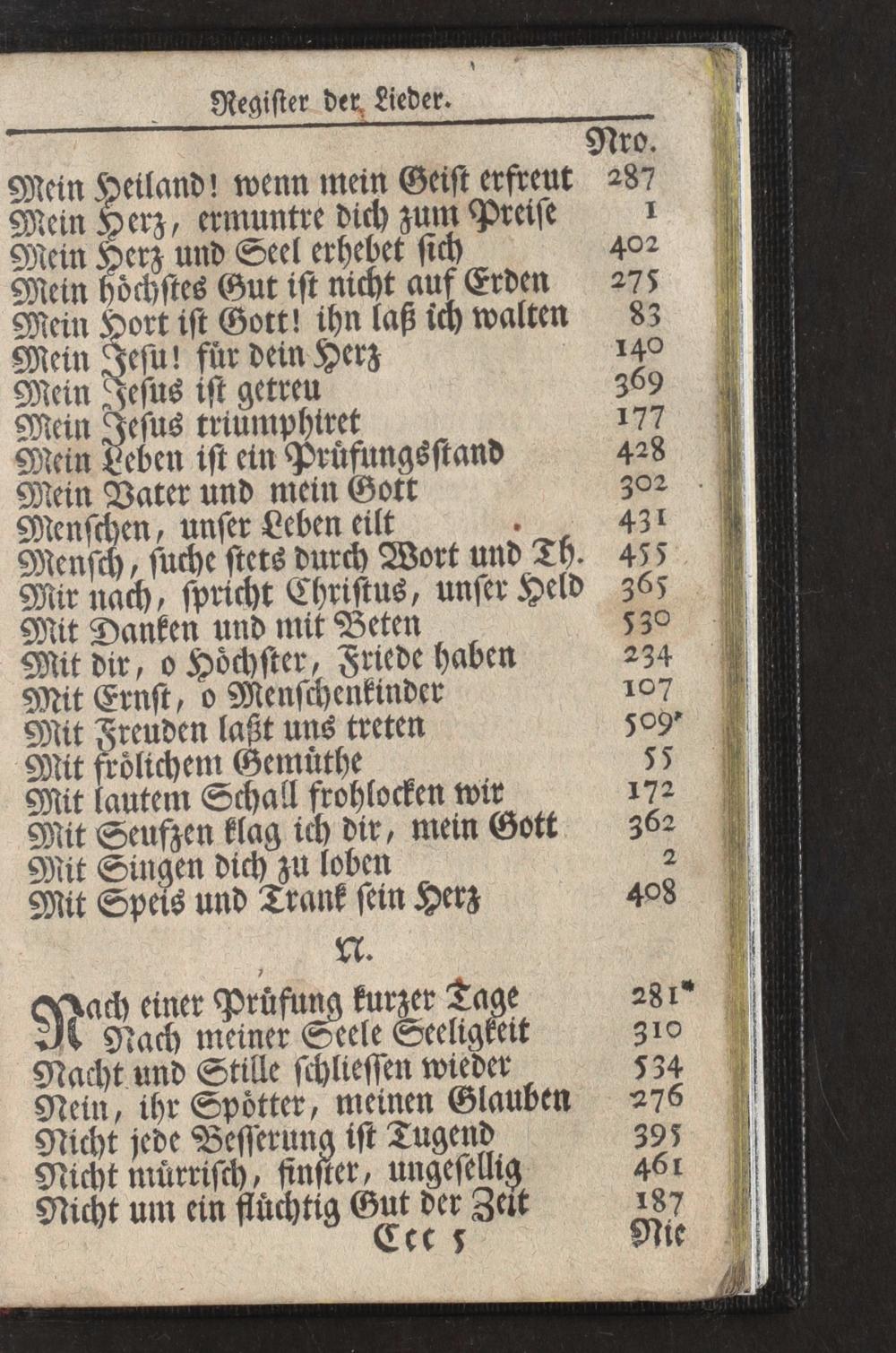 Negister der Lieder.