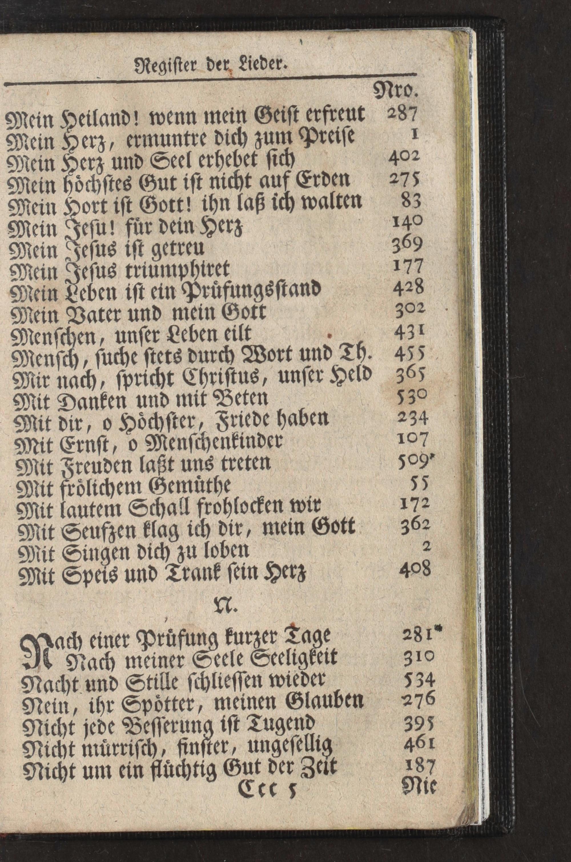 Nach einer Prüfung kurzer Tage Nach meiner Seele Seeligkeit Nacht und Stille schliessen wieder Nein, ihr Spötter, meinen Glauben Nicht jede Besserung ist Tugend Nicht mürrisch, finster, ungesellig Nicht um ein flüchtig Gut der Zeit Ctt s