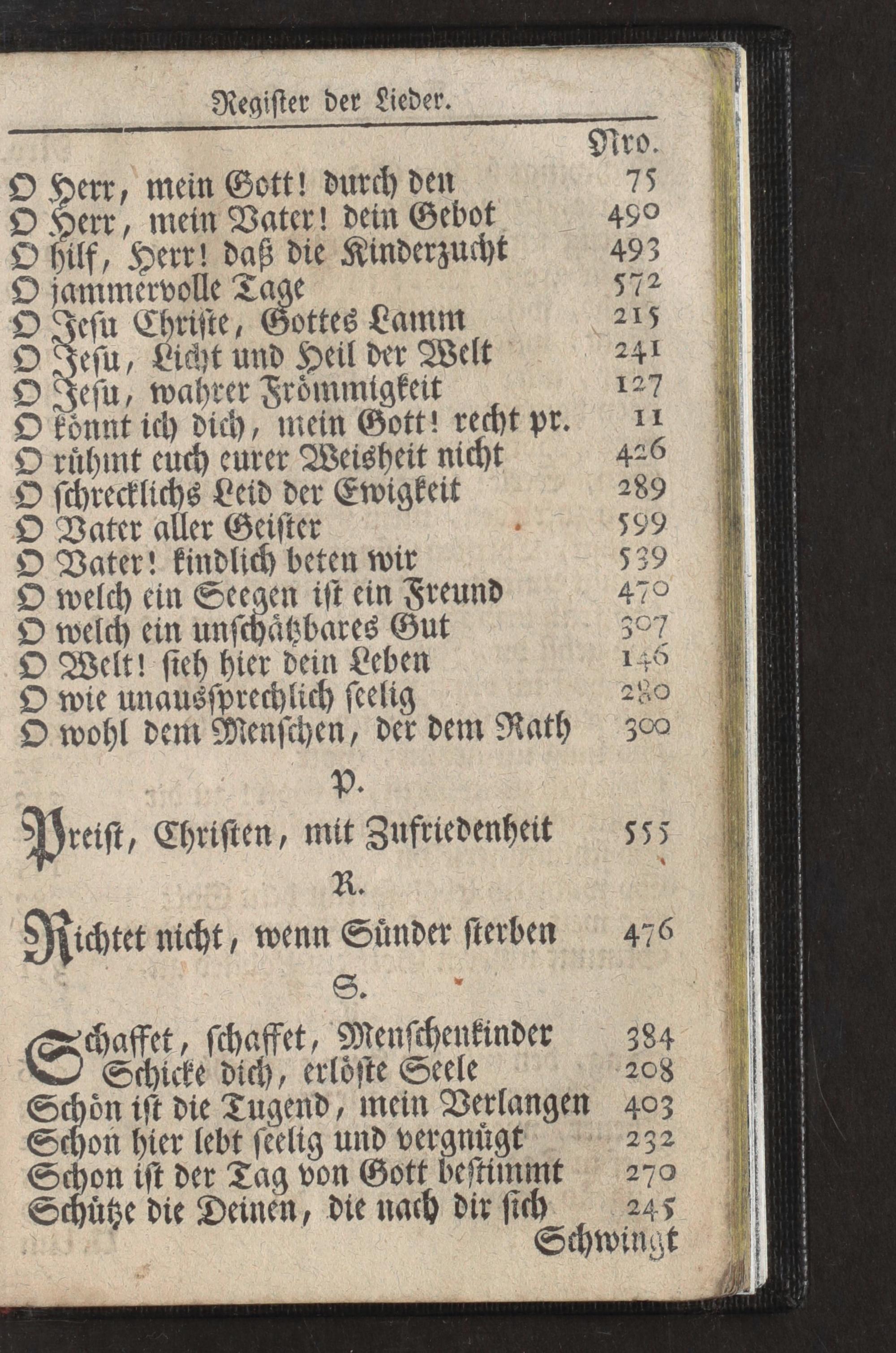 chaffet, schaffet, Menschenkinder Schicke dich, erlöste Seele Schon ist die Tugend, mein Verlangen 403 Schon hier lebt seelig und vergnügt Schon ist der Tag von Gott bestimmt Schütze die Deinen, die nach dir sich