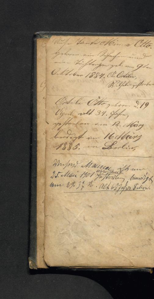 Outile Otto zeborn d. 19 April, alt 34. Jahre, gestorben. um 12. März bedigt um 16 März 1885. in Berlin,