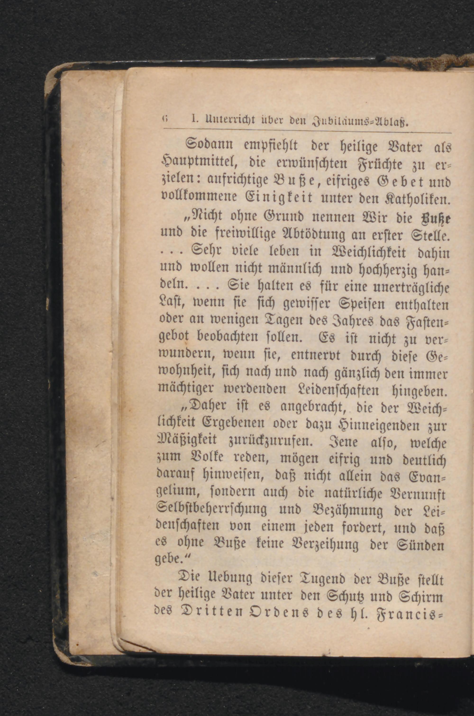 Die Uebung dieser Tugend der Buße stellt der heilige Vater unter den Schutz und Schirm des Dritten Ordens des hl. Francis