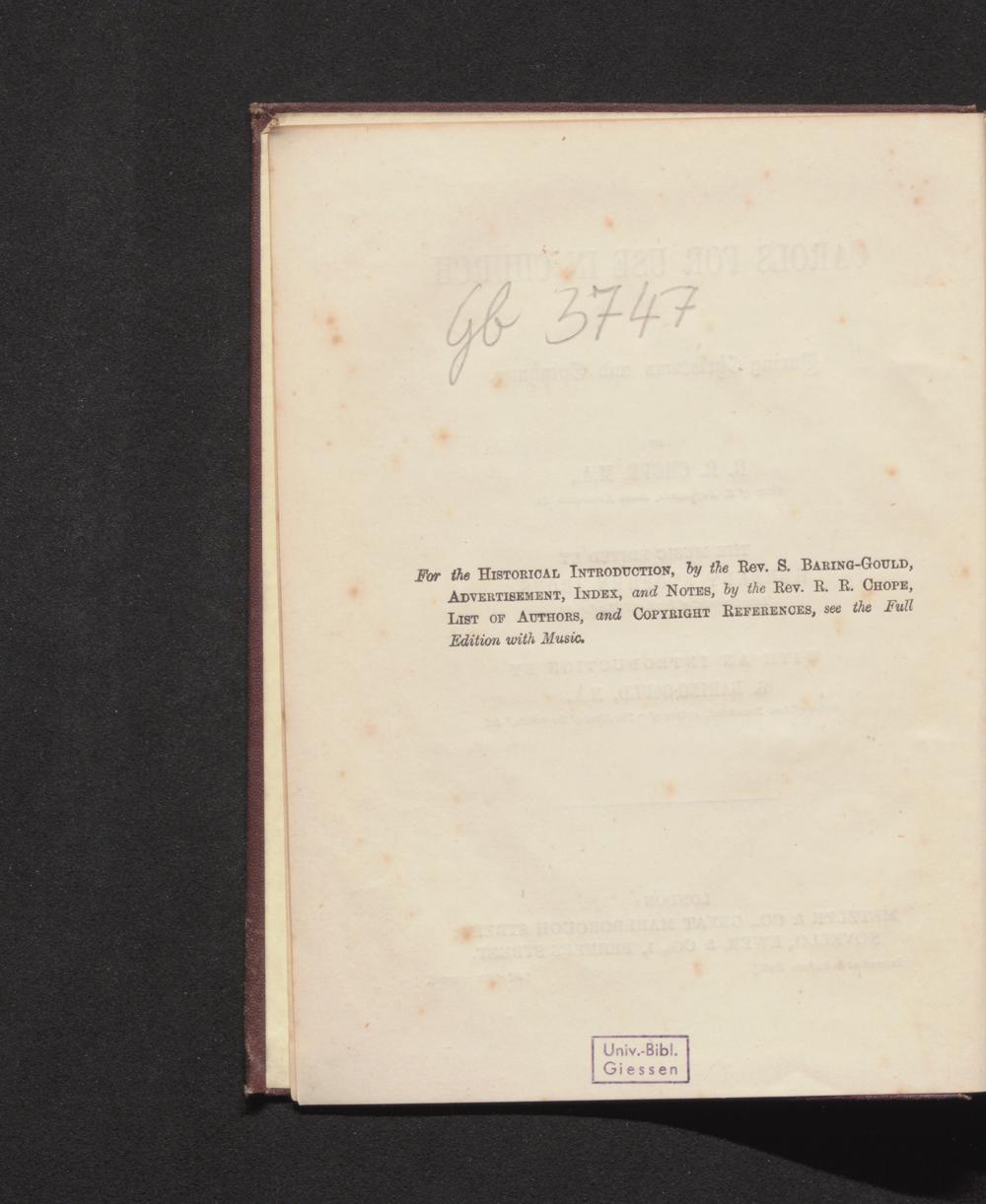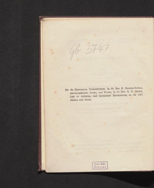For the HISTORICAL INTRODUCTION, by the Rev. S. BARING- GOULD, ADVERTISEMENT, INDEX, and NOTES, by the Rev. R. R. CHOPE, LIST OF AUTHORS, and COPYRIGHT REFERENCES, see the Full Edition with Music.