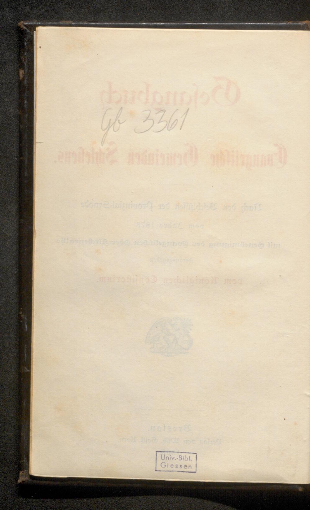 Gesangbuch für Evangelische Gemeinden Schlesiens : nach den Beschlüssen der Provinzial-Synode vom Jahre 1878 mit Genehmigung des Ev. Ober-Kirchenraths / hrsg. vom Kgl. Consistorium. [Nebst] Anhang