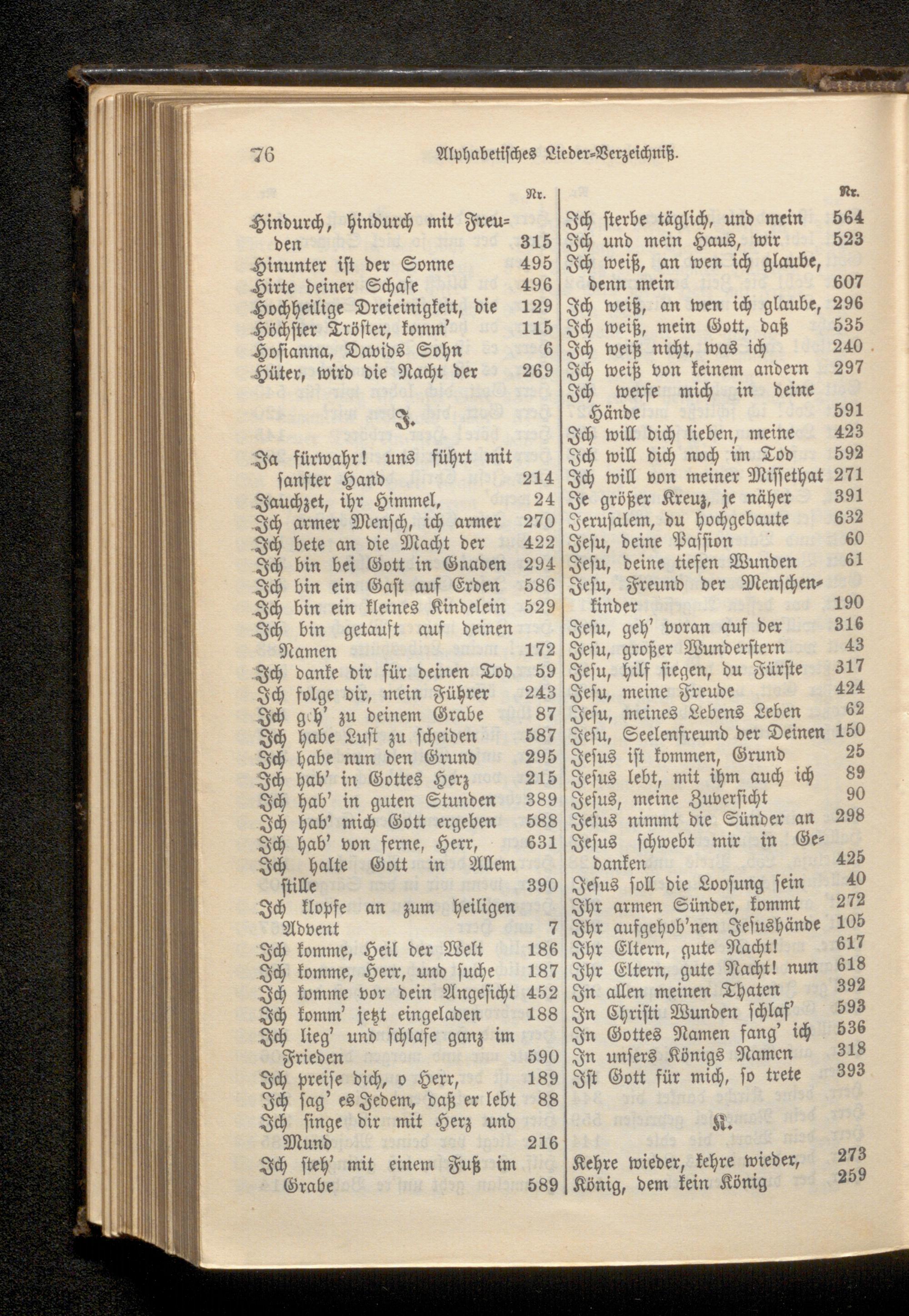 7 Jhr aufgehob'nen Jesushände 105 186 Jhr Eltern, gute Nacht! 187 Ihr Eltern, gute Nacht! nun 618 452 In allen meinen Thaten