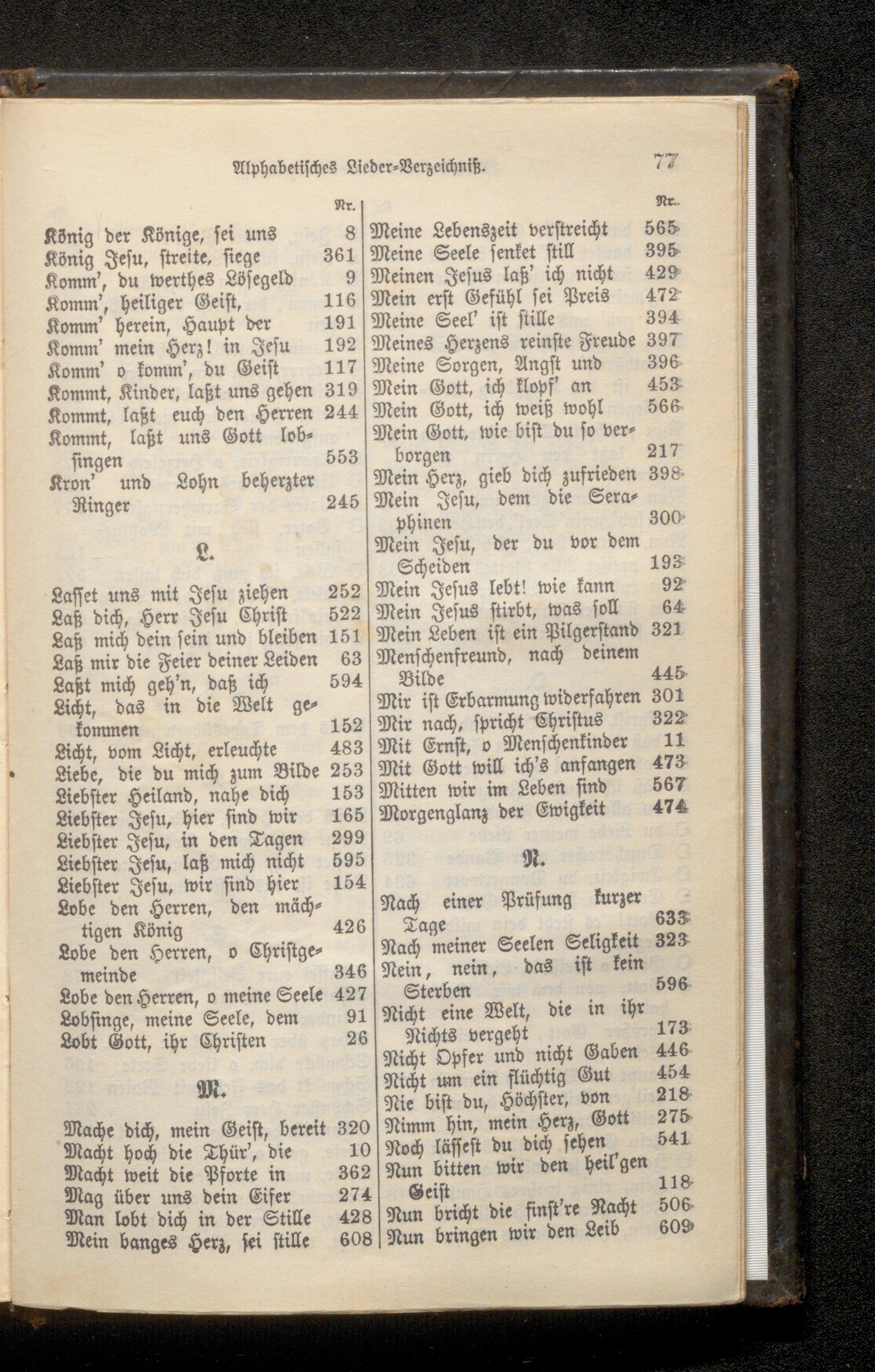 Alphabetisches Lieder- Verzeichniß.