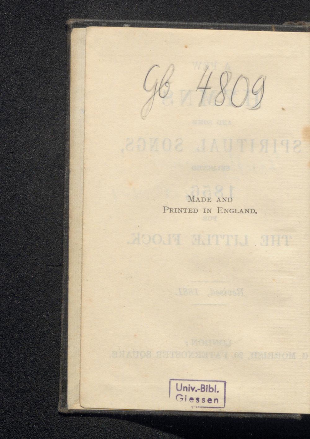 Gb 4809 20402 AUTIA142 MADE AND PRINTED IN ENGLAND, I TIJ. IHT 1881 Josios Univ.- Bibl. Giessen 100 119900
