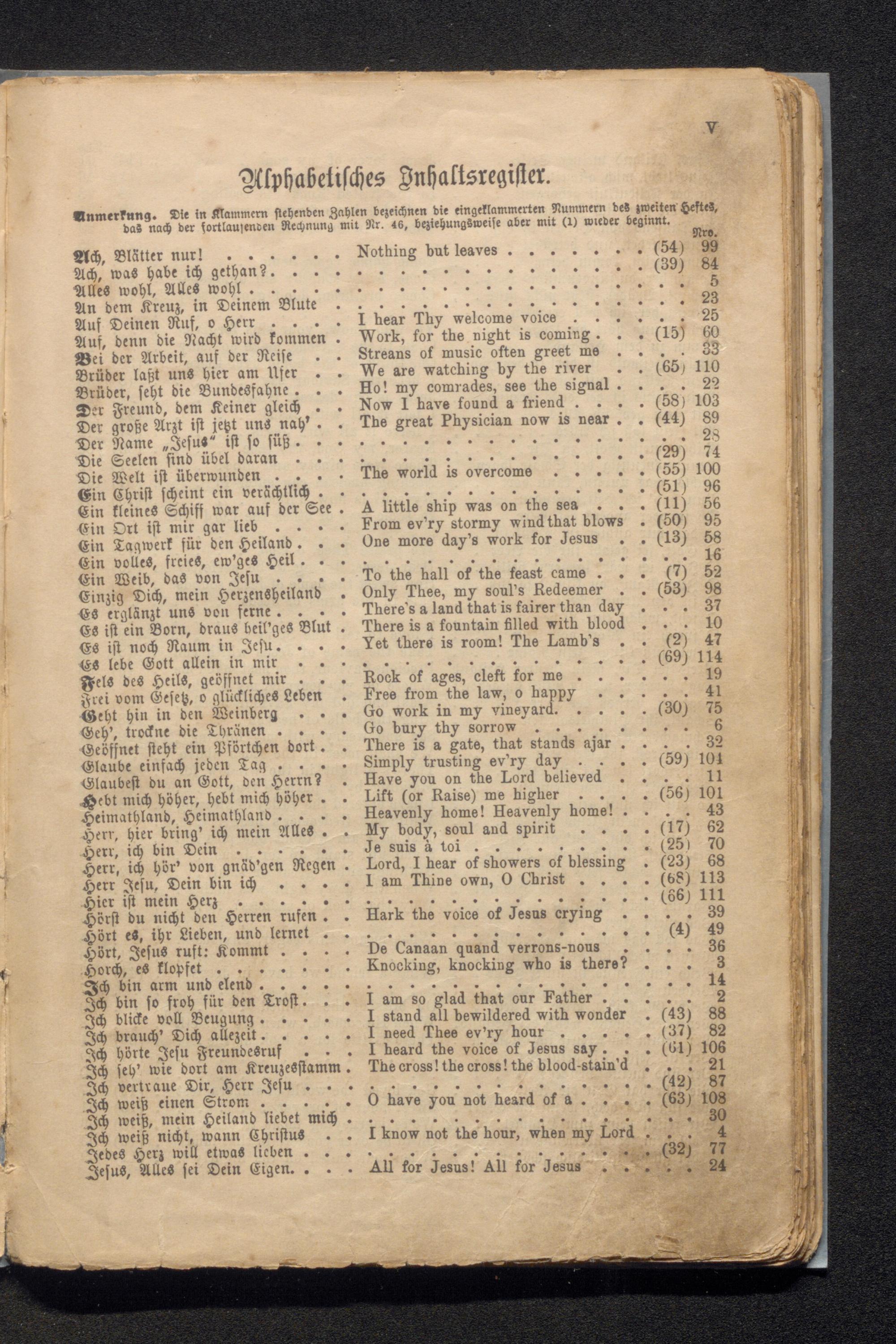 Auf, denn die Nacht wird kommen Bei der Arbeit, auf der Reise Brüder laßt uns hier am Ufer Brüder, seht die Bundesfahne. Der Freund, dem Keiner gleich Der große Arzt ist jeßt uns nah'