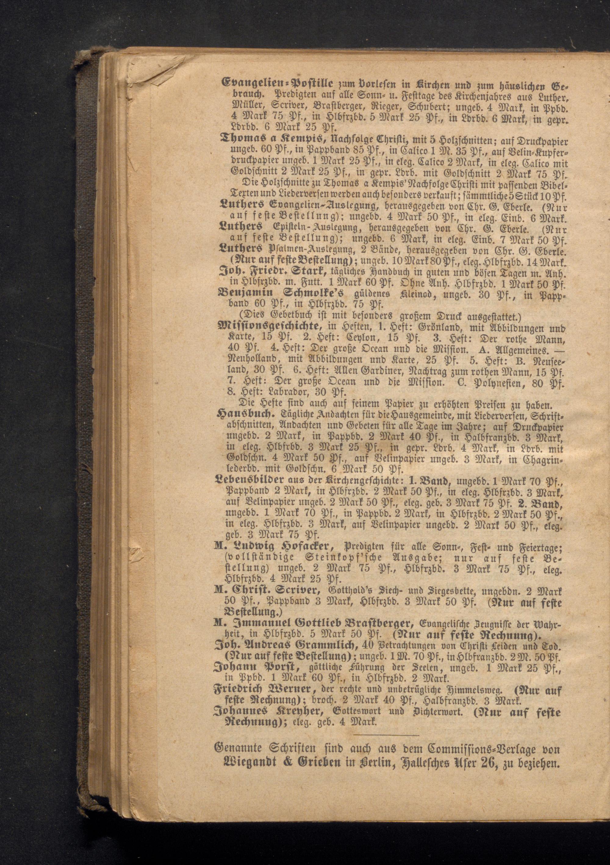Genannte Schriften sind auch aus dem Commissions- Berlage von Wiegandt& Grieben in Berlin, Hallesches User 26, zu beziehen.