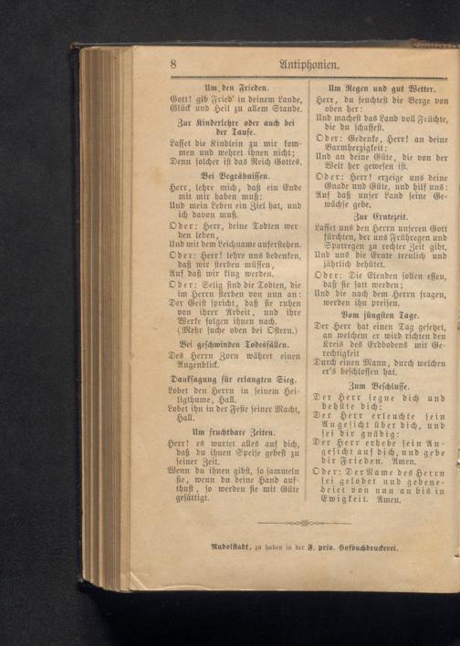 Um, den Frieden. Gott! gib Fried' in deinem Lande, Glück und Heil zu allem Stande.
