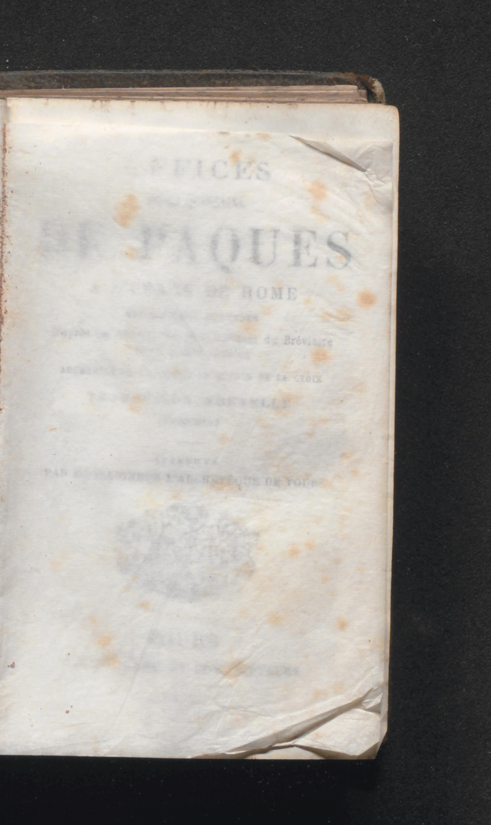 Offices de la quinzaine de Paques a l'usage de Rome entièrement refondus : d'après les éditions les plus récentes du Bréviaire et du Missel romains ; augmentés de l'exercice du chemin de la croix ; traduction nouvelle ; approuvé par Mons. L'Archevêque de Tours