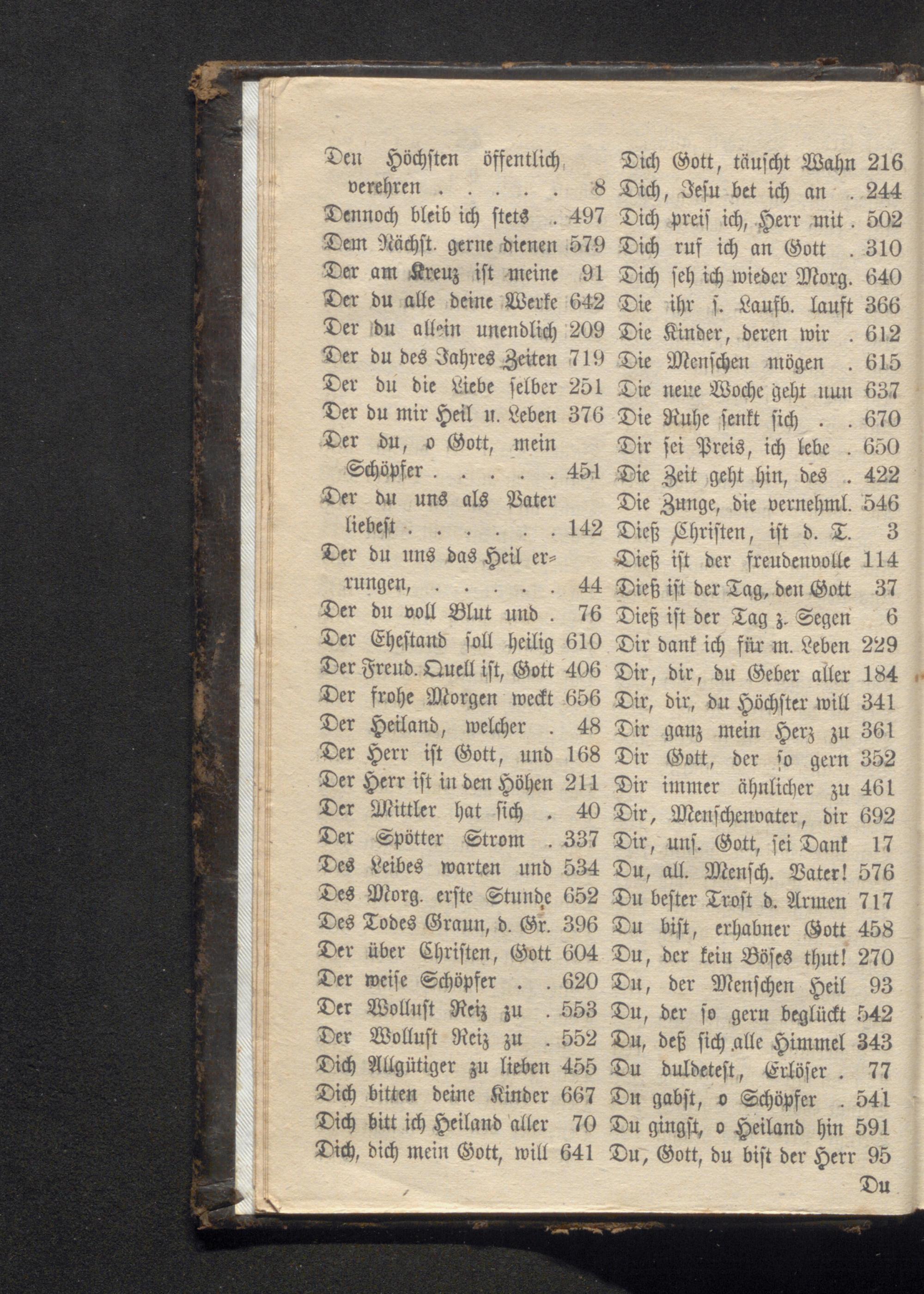 Dir dank ich für m. Leben 229 Dir, dir, du Geber aller 184 Dir, dir, du Höchster will 341 Der Heiland, welcher. 48 Dir ganz mein Herz zu 361 Der Herr ist Gott, und 168 Dir Gott, der so gern 352 Der Herr ist in den Höhen 211 Dir immer ähnlicher zu 461 Der Mittler hat sich 40 Dir, Menschenvater, dir 692 Der Spötter Strom 337 Dir, uns. Gott, sei Dank 17 Des Leibes warten und 534 Du, all. Mensch. Vater! 576 Des Morg. erste Stunde 652 Du bester Trost d. Armen 717 Des Todes Graun, d. Gr. 396 Du bist, erhabner Gott 458 Der über Christen, Gott 604 Du, der kein Böſes thut! 270 Der weise Schöpfer.. 620 Du, der Menschen Heil 93 Der Wollust Reiz zu 553 Du, der so gern beglückt 542 Der Wollust Reiz zu. 552 Du, deß sich alle Himmel 343 Dich Allgütiger zu lieben 455 Du duldetest, Erlöser. 77 Dich bitten deine Kinder 667 Du gabst, o Schöpfer. 541 Dich bitt ich Heiland aller 70 Du gingst, o Heiland hin 591 Dich, dich mein Gott, will 641 Du, Gott, du bist der Herr 95 Du
