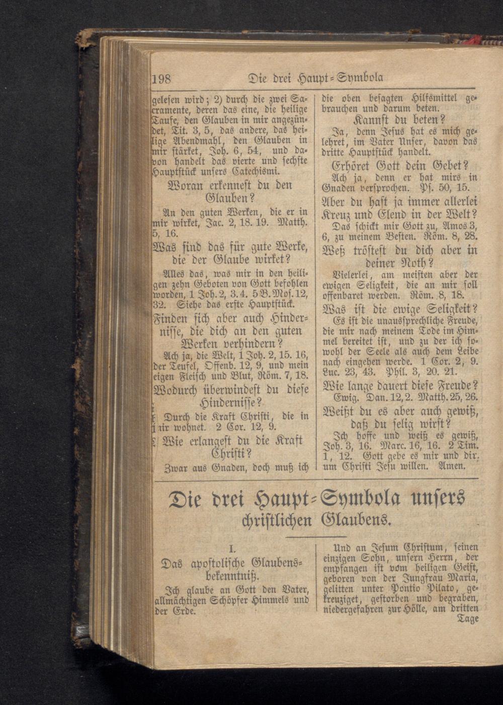 Und an Jesum Christum, seinen einzigen Sohn, unfern Herrn, der empfangen ist vom heiligen Geist, geboren von der Jungfrau Maria, gelitten unter Pontio Pilato, ge= freuziget, gestorben und begraben, niedergefahren zur Hölle, am dritten Tage
