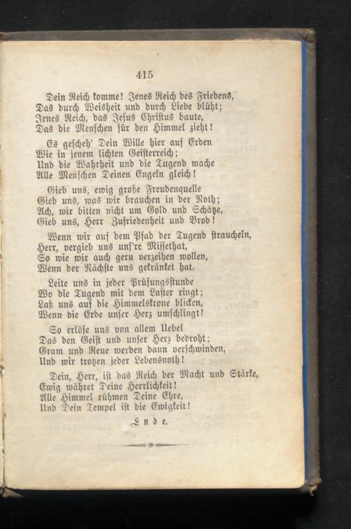 Dein Reich komme! Jenes Reich des Friedens, Das durch Weisheit und durch Liebe blüht; Jenes Reich, das Jesus Christus baute, Das die Menschen für den Himmel zieht!